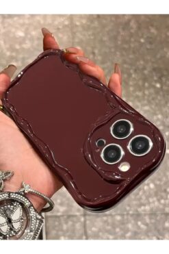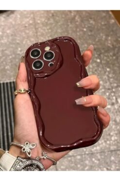 İphone 14 Pro Max Uyumlu Kılıf Dalgalı Kenarlı Darbelere Karşı Dayanıklı Yumuşak Silikon Kapak Bordo