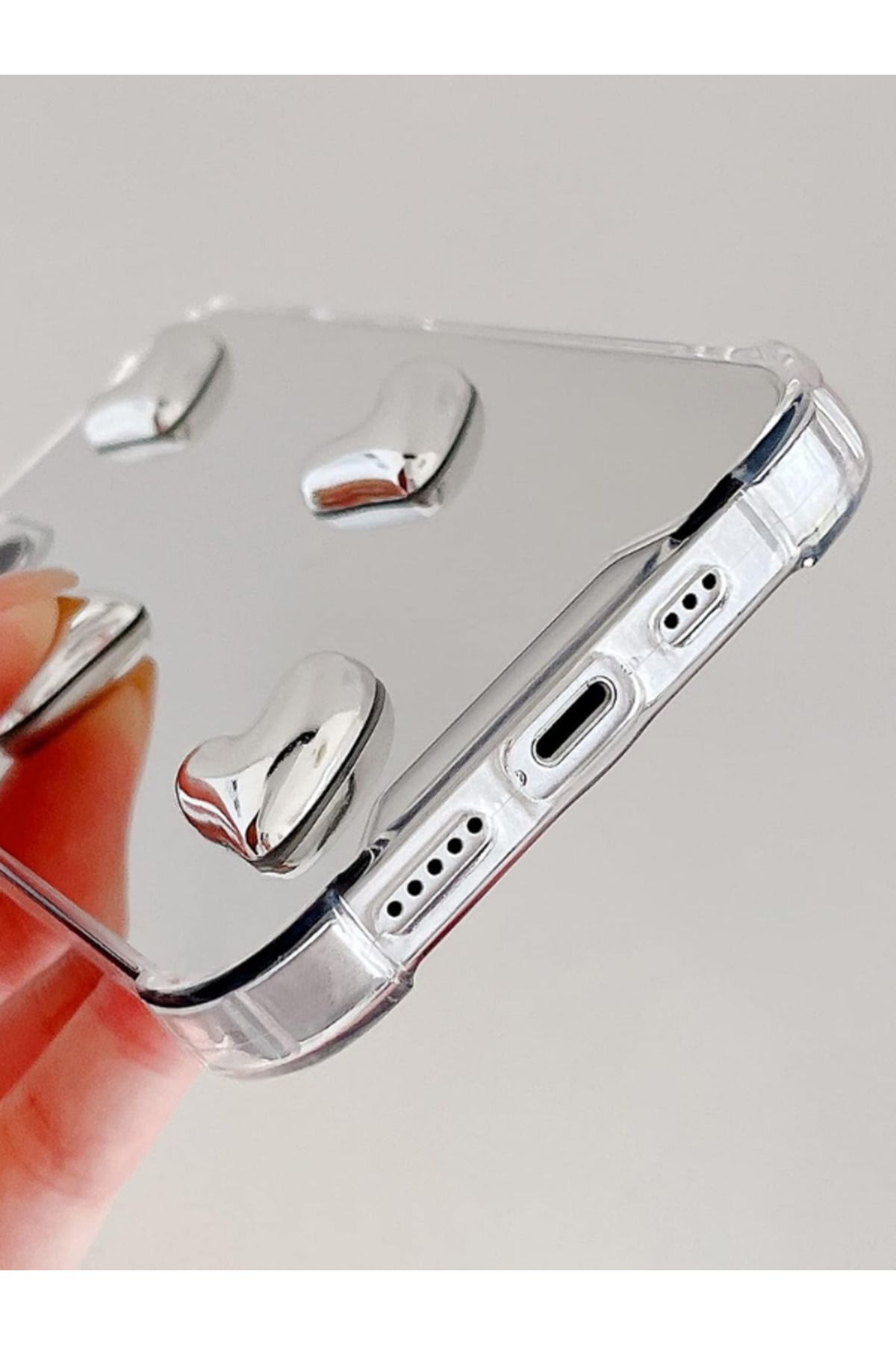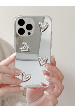 KVK PRİVACY İphone 15 Pro Max uyumlu Aynalı Kılıf Gümüş Kalp Tasarımlı Şık Darbelere Karşı Dayanıklı Esnek Kapak