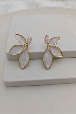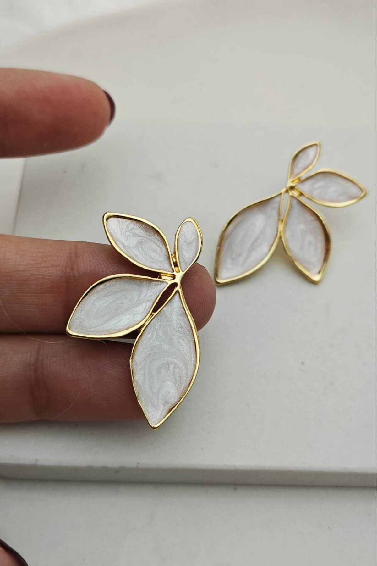KYOLA DESİGN Beyaz Sedefli İkonik Gold Yaprak Kadın Küpe (4.5 cm)