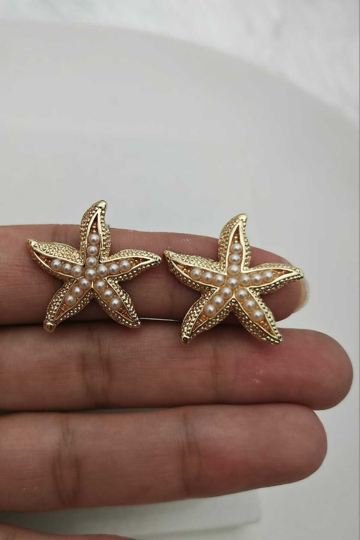 KYOLA DESİGN İncili Deniz Yıldızı Gold Küpe
