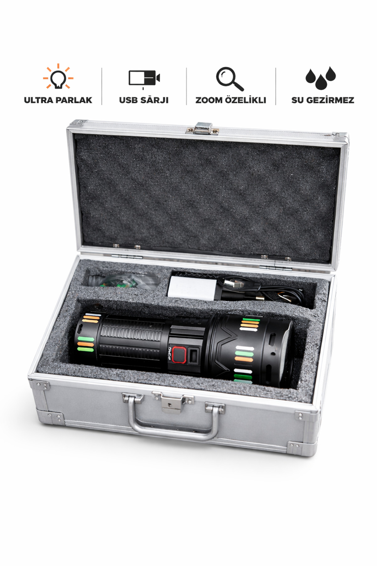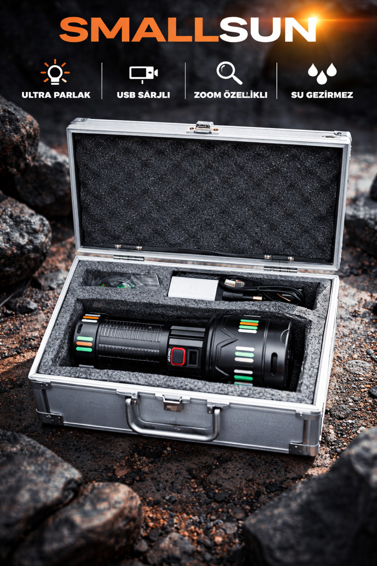 LA CHIC Small Sun Profesyonel Avcı Ve Kamp Tipi 5000 Lümen El Feneri -Çantalı Set -Full Asesuarlı