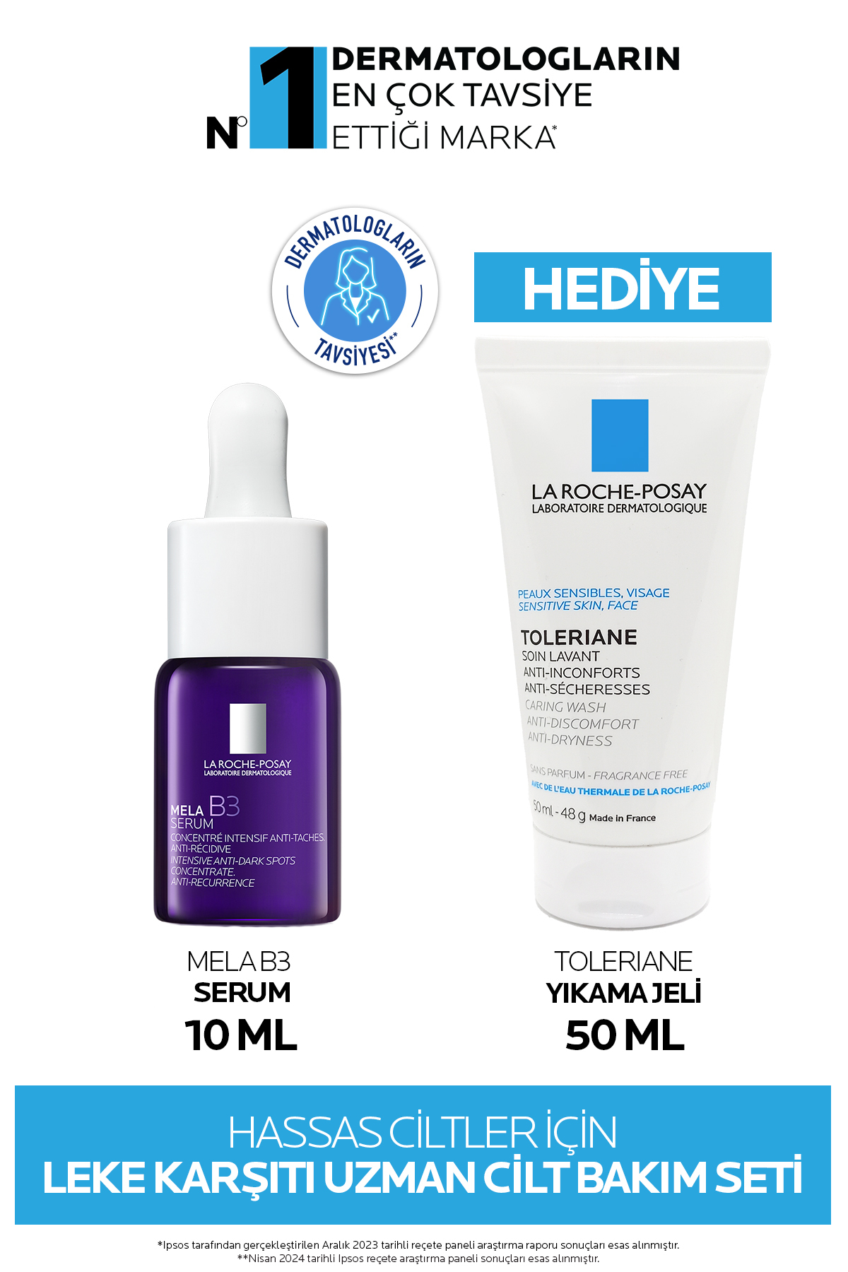 La Roche Posay Mela B3 Serum Koyu Leke Karşıtı Uzman Cilt Bakım Seti: Mela Serum 10ML&Toleriane Yıkama Jeli 50ML