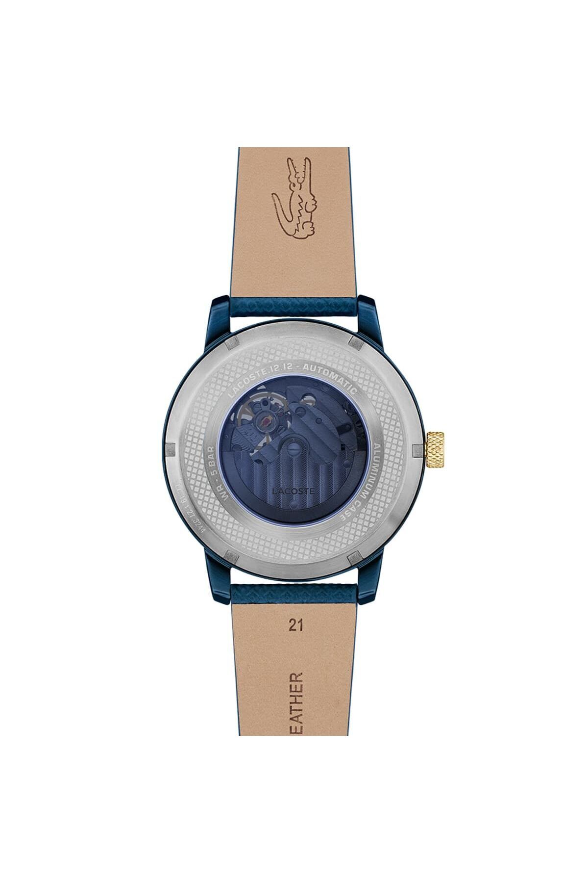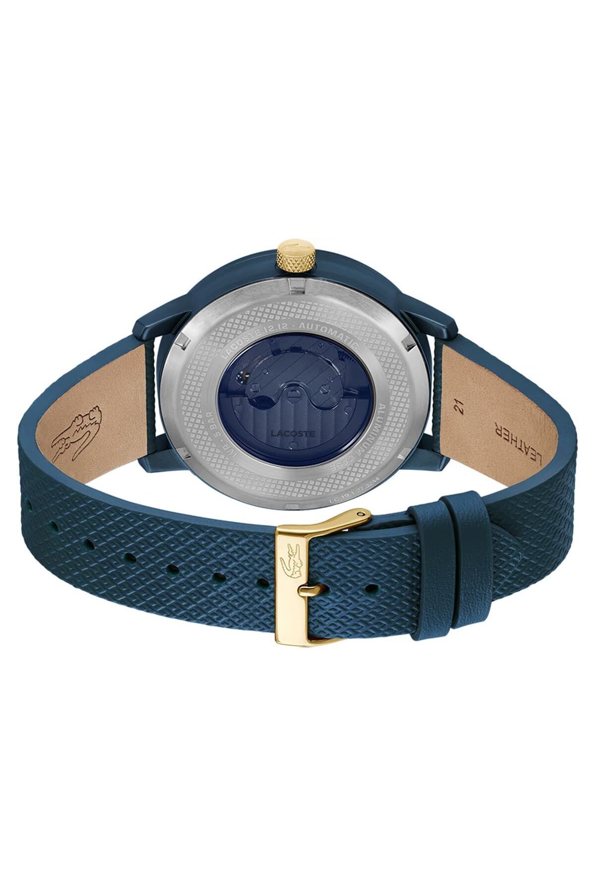 CaseThickness:13 mm CaseDiameter:44 mm WaterProof:5 ATM KasaMateryali:Alüminyum DialType:Analog HayvansalIcerikBilgisi:Dana Derisi StrapLanyardProperty:Deri Gender:Erkek Yaş Grubu:Erkek CategoryName:Erkek Spor Saat BrandName:Lacoste CaseColor:Mavi DialColor:Mavi StrapLanyardColor:Mavi GlassProperty:Mineral Technology:Otomatik Style:Spor Saatler Calendar:Yok Kronometre:Yok CaseStone:Yok Alarm:Yok DialStone:Yok KadranTasi:Yok CaseShape:Yuvarlak