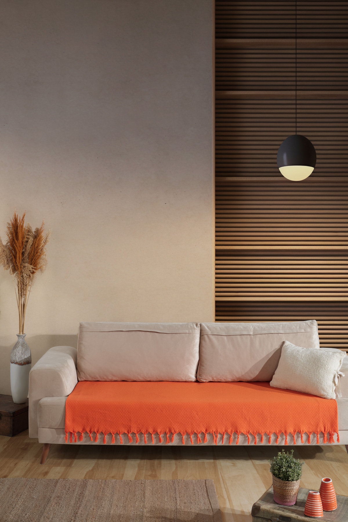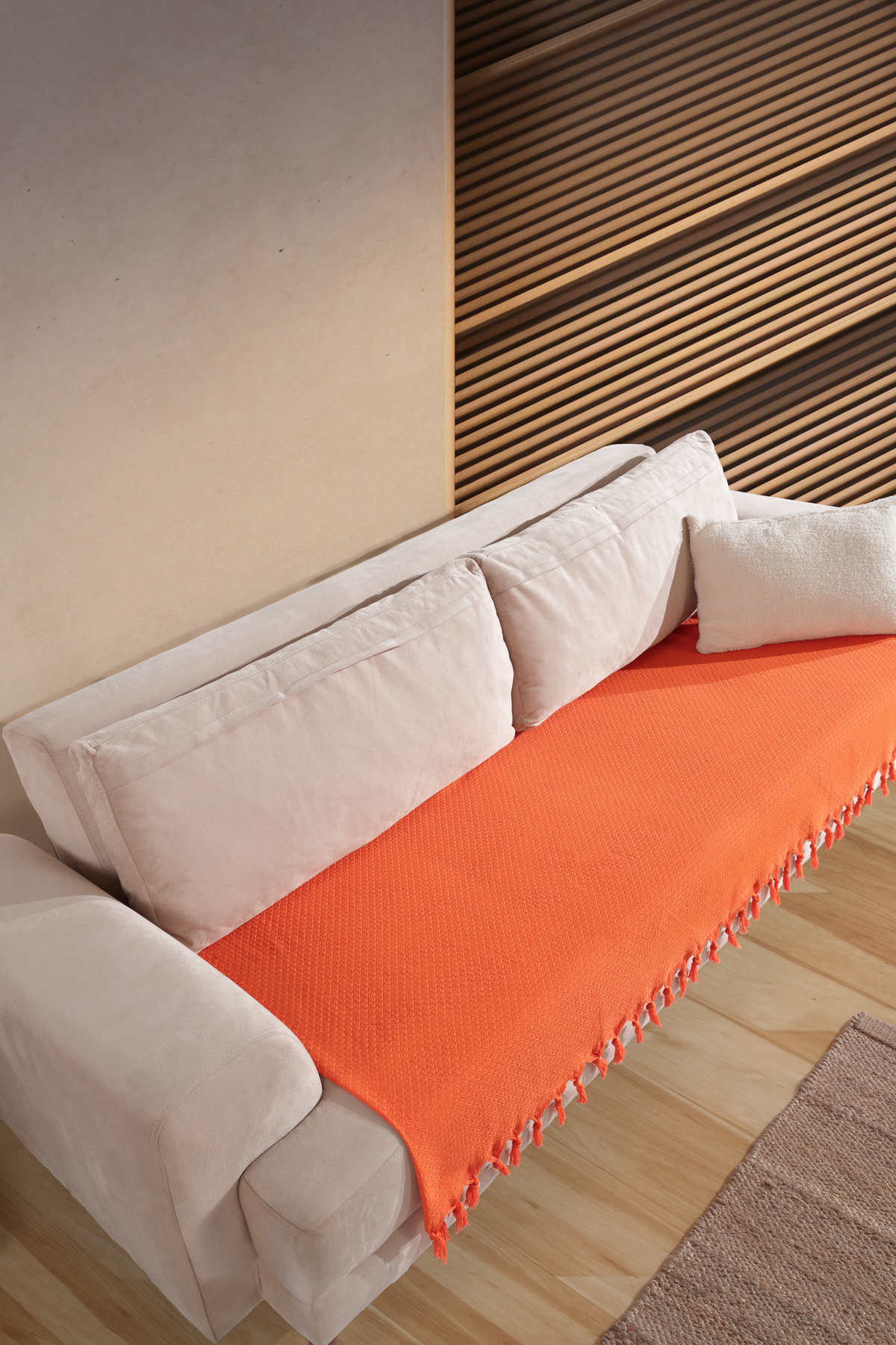 essense Home&Living %100 Bambu BEJ yumuşak tüylü koltuk örtüsü çok amaçlı süngerli koltuk örtüsü ( 170x210)