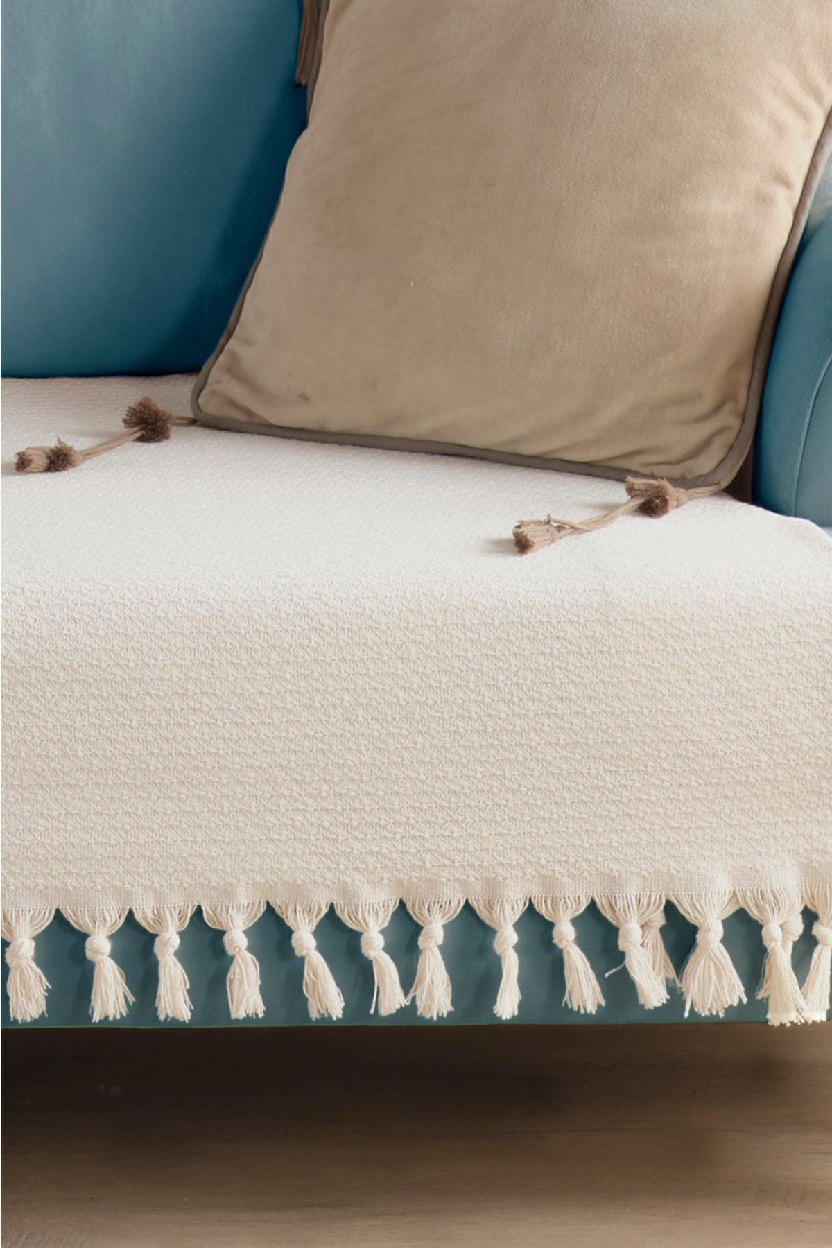 KAMİZ Fırfırlı Koltuk Örtüsü Bohem Pamuk Keten | Kaymaz, Yıkanabilir, Modern Şık Tasarım