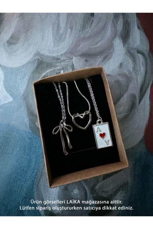 LAİKA Fiyonk-kalp-as Gümüş Renk 3’lü Çelik Zincirli Kolye Seti en ucuz fiyata kozmetikara.com sitemizden sipariş verebilirsiniz.