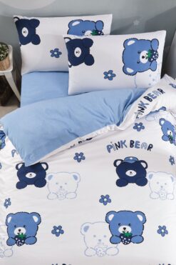 LaLiva Çarşafı Lastikli Ayıcıklı Mavi Çocuk Nevresim Takımı