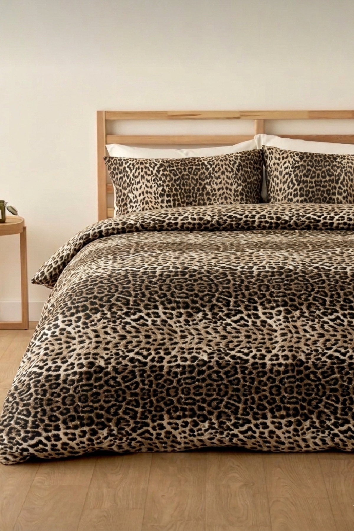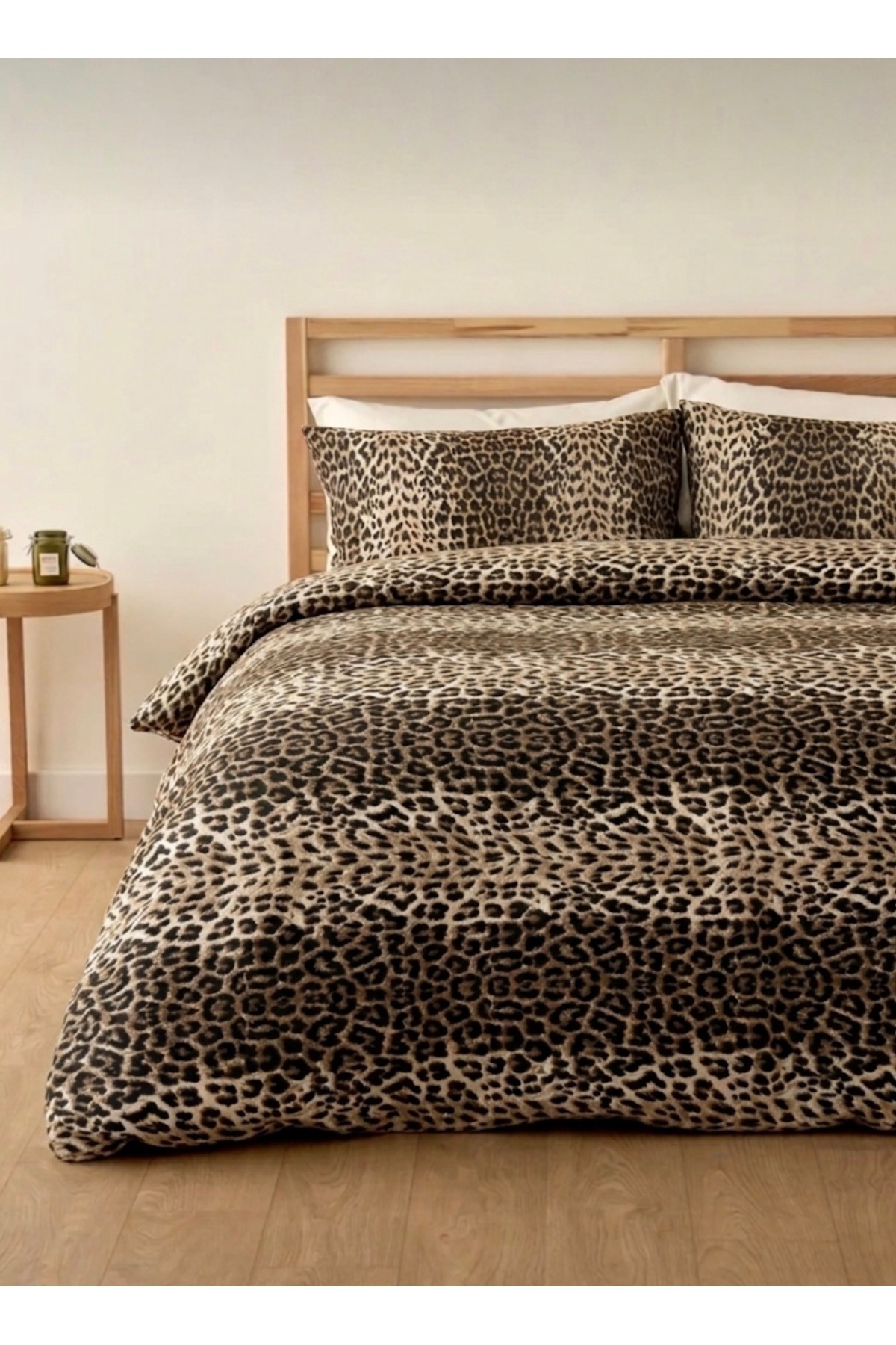 LaLiva Leopar Desenli Çift Kişilik Lastikli Çarşaflı Nevresim Takımı