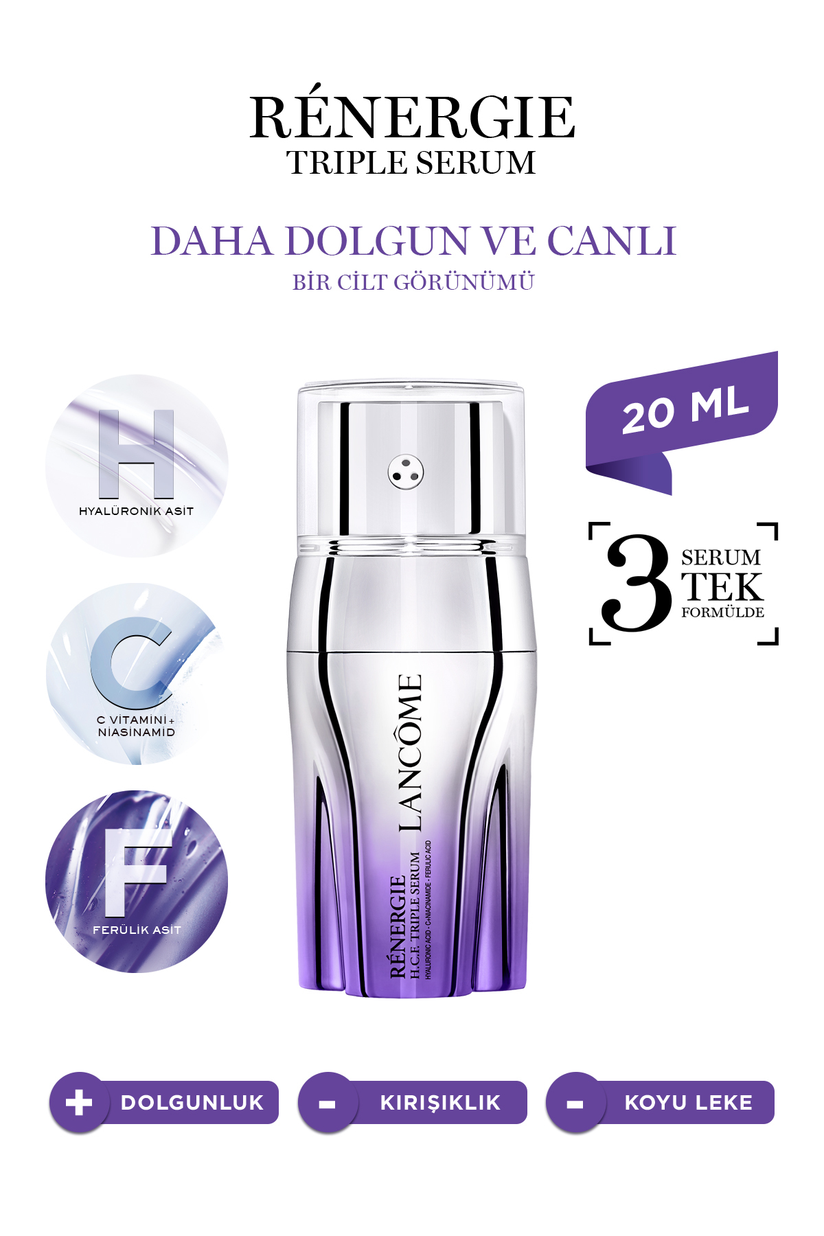 Lancome Renergie Triple Serum Hyalüronik Asit, C Vitamini+niasinamid, Ferülik Asit 20 ml 3614274170191 ürünü ucuz fiyat, hızlı kargo imkanı ile hemen sitemizden sipariş verin.