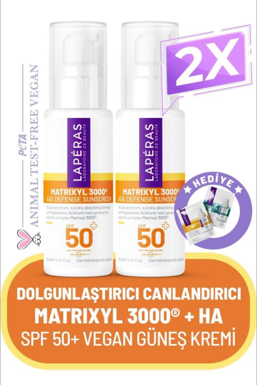 LAPERAS Su Bazlı Güneş Kremi 75 ml | Matrixyl 3000® Peptit Spf 50 Dolgunlaştırıcı Vegan 2'li Paket ürününü en uygun fiyata kozmetikara.com sitemizden sipariş verebilirsiniz.