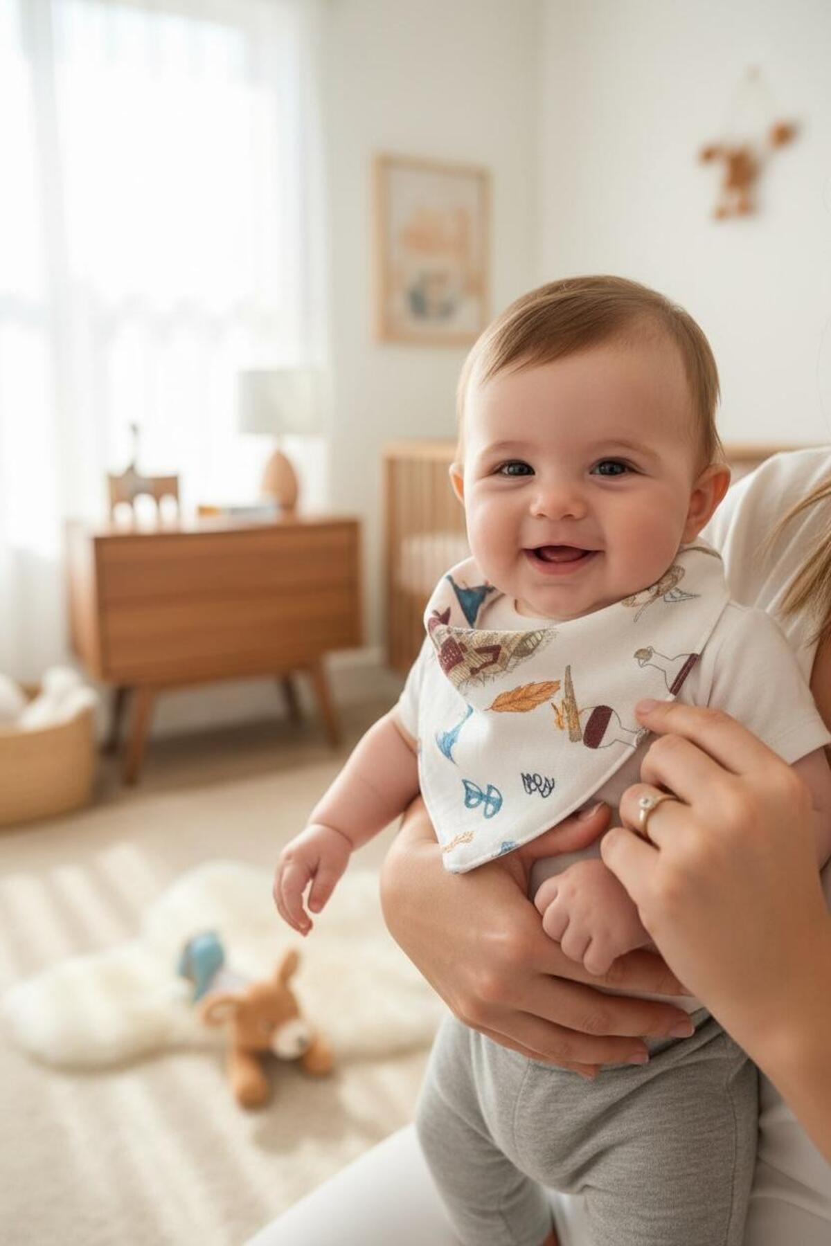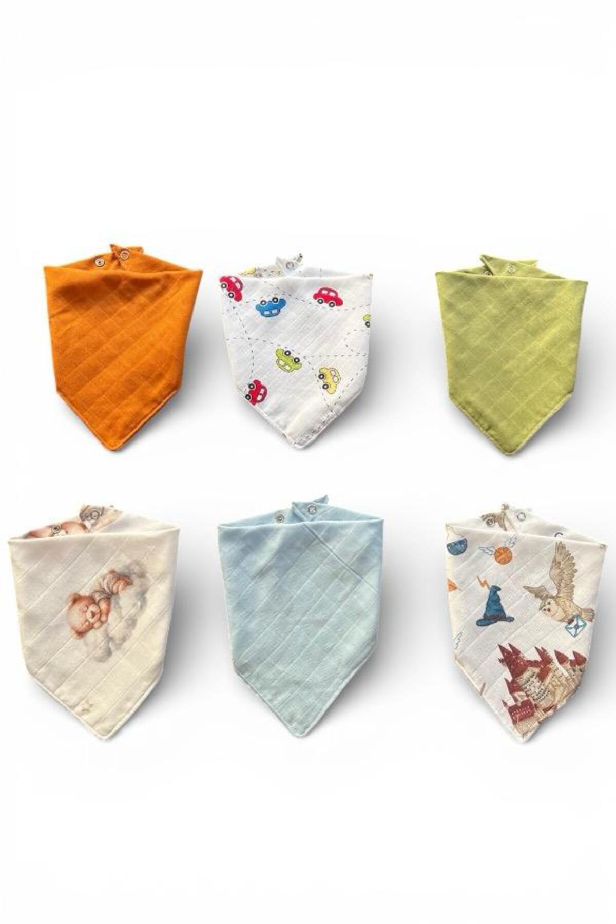 Lasilla Erkek Bebek Ağız Mendili Fular 6’lı Set – %100 Pamuk Müslin, Çıtçıtlı Salya Mendili