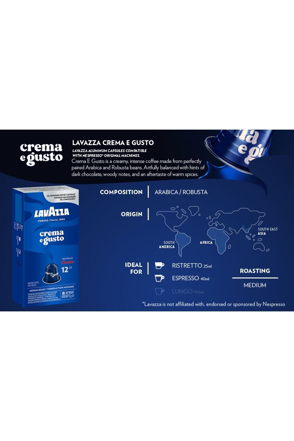 LavAzza Nespresso uyumlu Crema E Gusto kapsül kahve ürünü ucuz fiyat, hızlı kargo imkanı ile hemen sitemizden sipariş verin.
