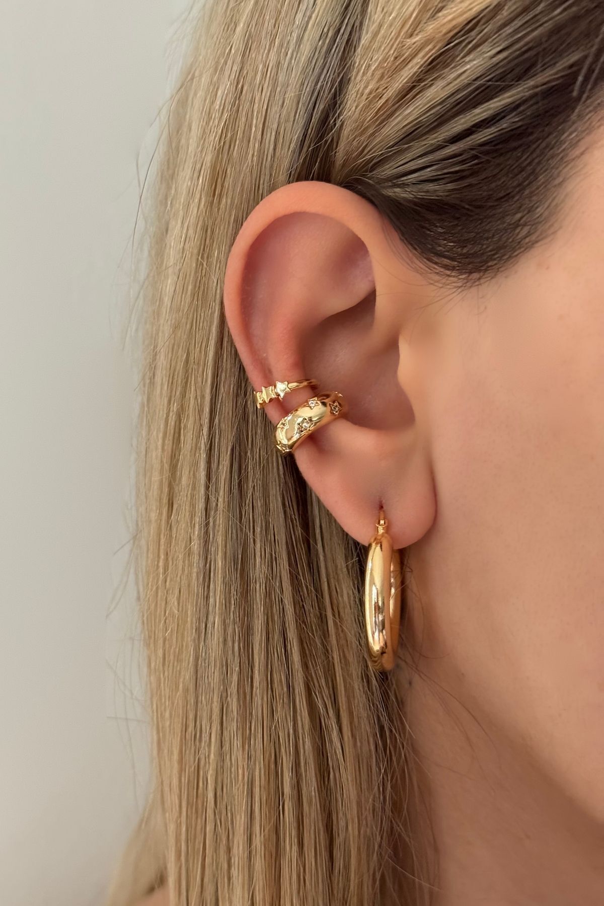 Lavian Accessories Gold Renk 2’li Yıldız Zirkon Taşlı Earcuff Seti