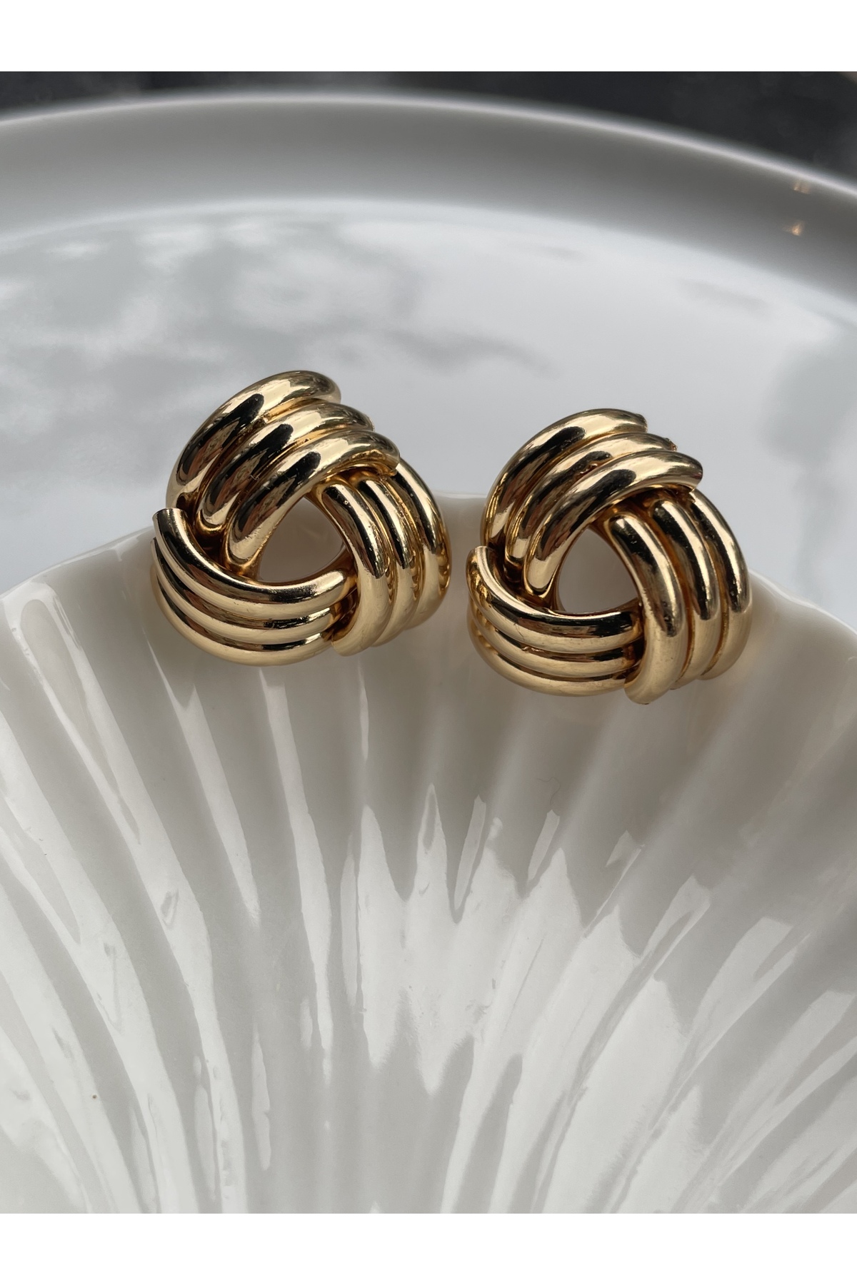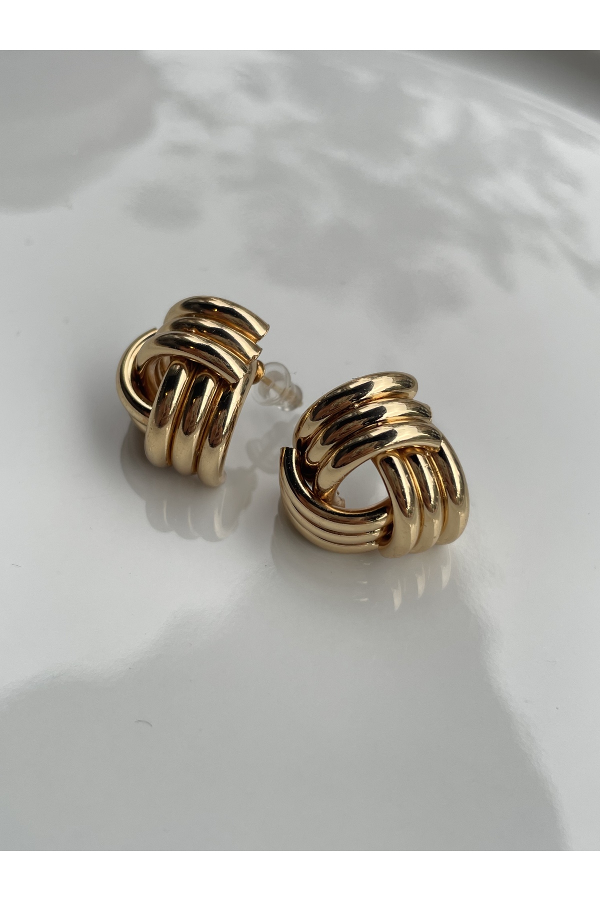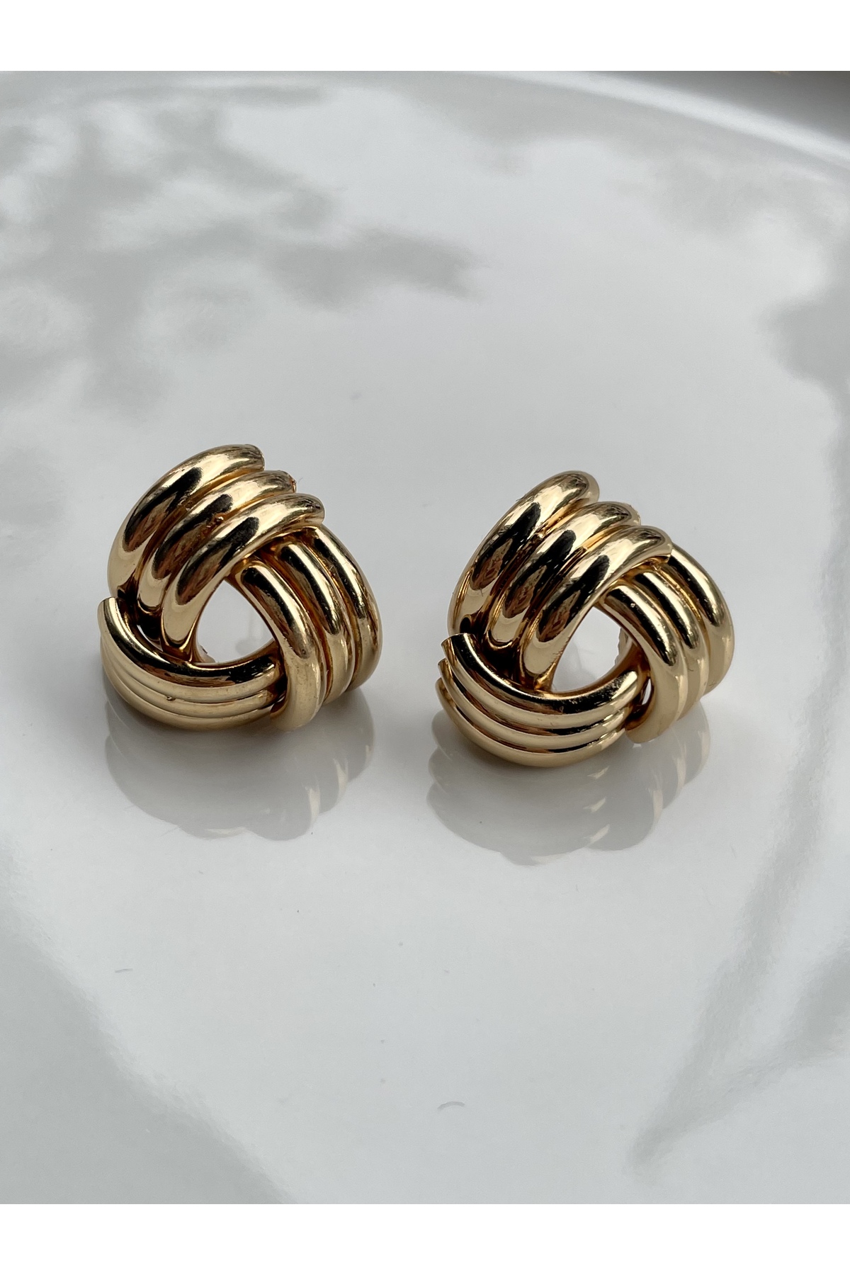 XUPING JEWELRY 14 Ayar Altın Kaplama Örgü Desenli Halka Küpe