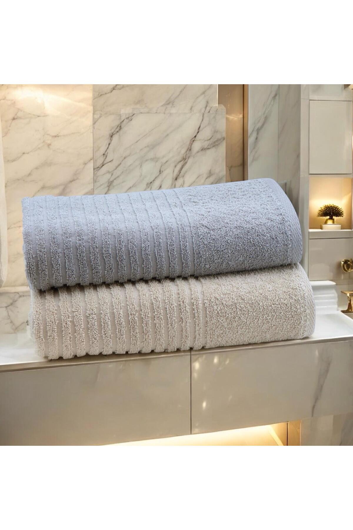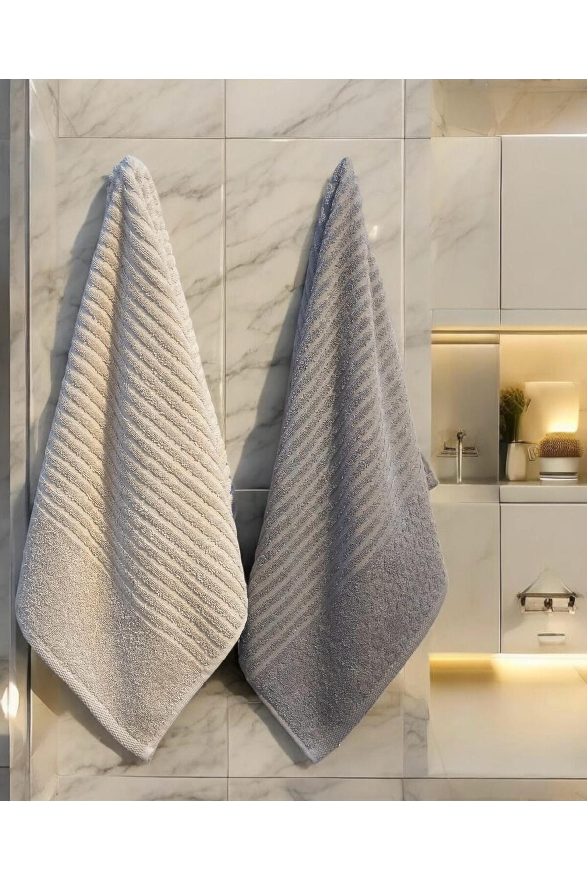 LAVİNA HOME Buz Grisi & Bej %100 Pamuk 2’li Jakarlı El Yüz Havlusu – Yumuşak & Emici Premium Pamuk Havlu Seti