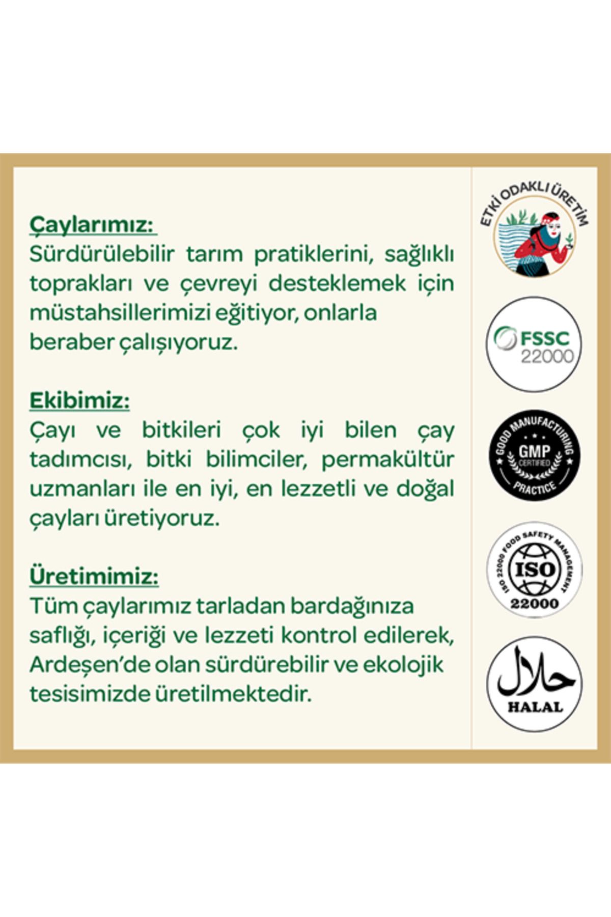 Tamamı el ile toplanan üst 2,5 yapraklardan üretilen çayımızda %100 Karadeniz kadınının el emeği vardır.