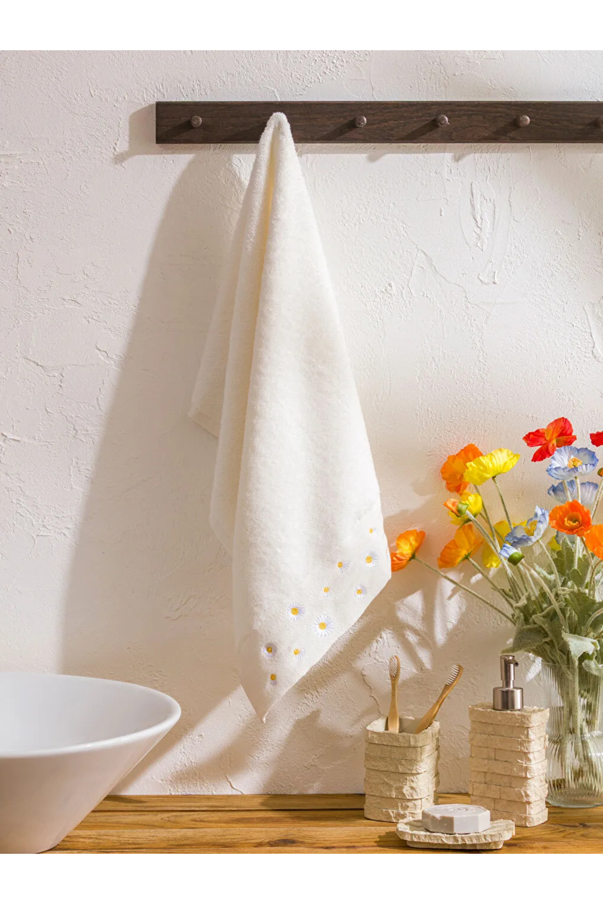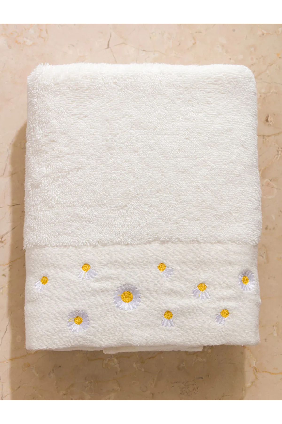LC Waikiki Ekru Çiçek Nakışlı Pamuklu Yüz Havlusu 50×80 cm