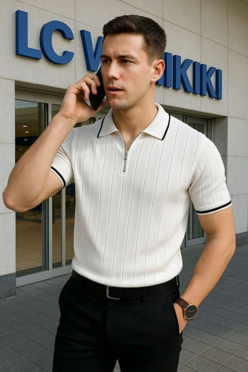LC Waikiki Polo Yaka Fermuarlı Kısa Kollu Erkek Yazlık Triko Premium Kalite Tişört / T-shirt