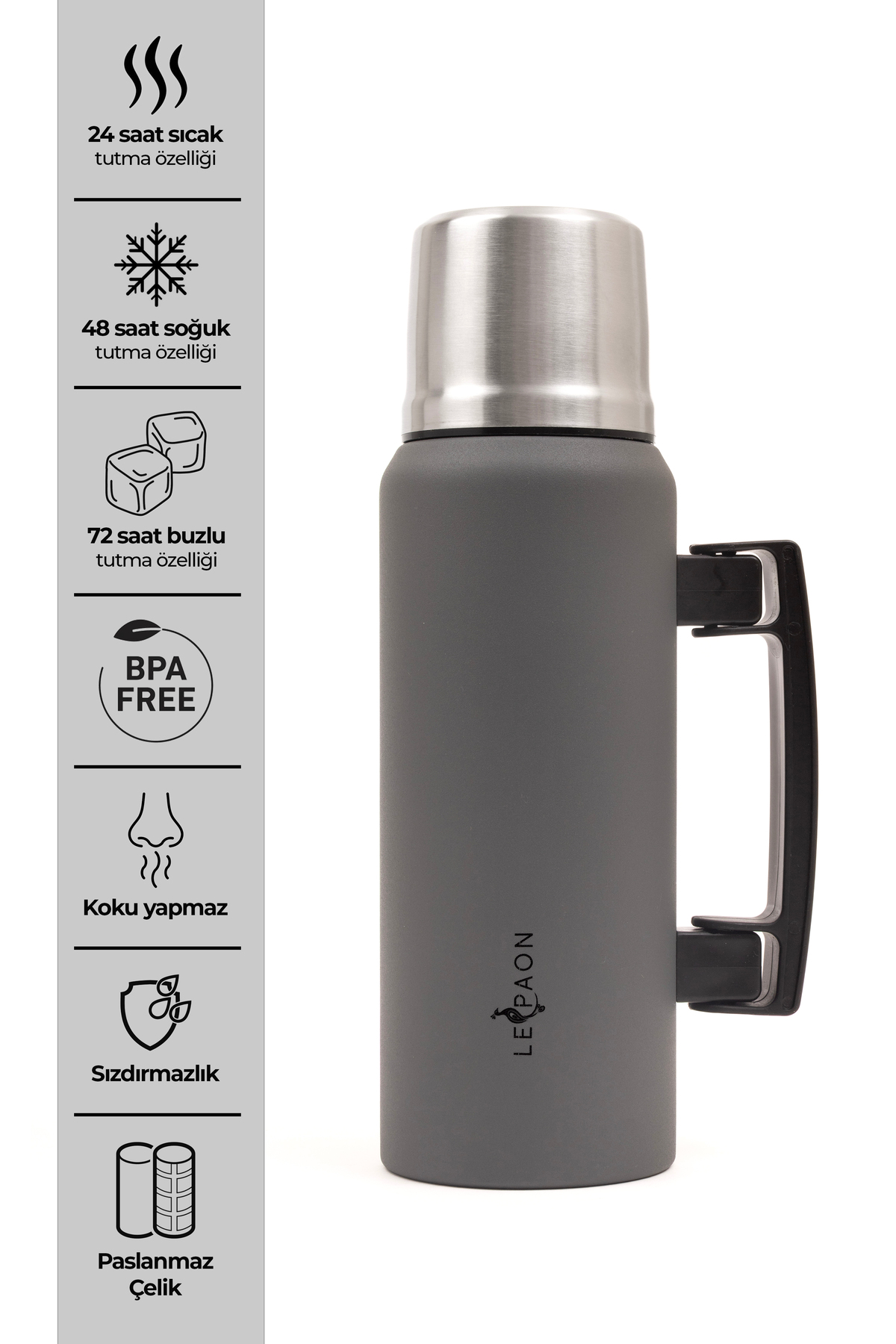 Le Paon 1 Lt. Paslanmaz Çelik Termos Katlanır Kulp Sızdırmaz 24 Saat Sıcak 48 Saat Soğuk BPA Free