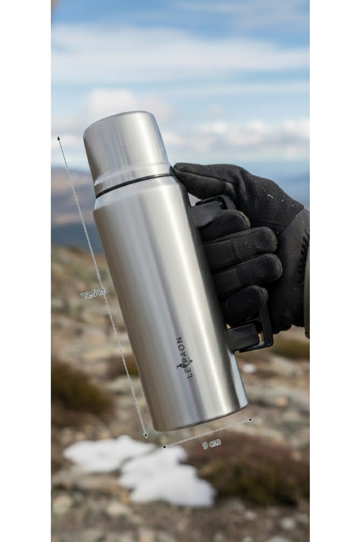 Le Paon 1 Lt. Paslanmaz Çelik Termos Katlanır Kulp Sızdırmaz 24 Saat Sıcak 48 Saat Soğuk BPA Free