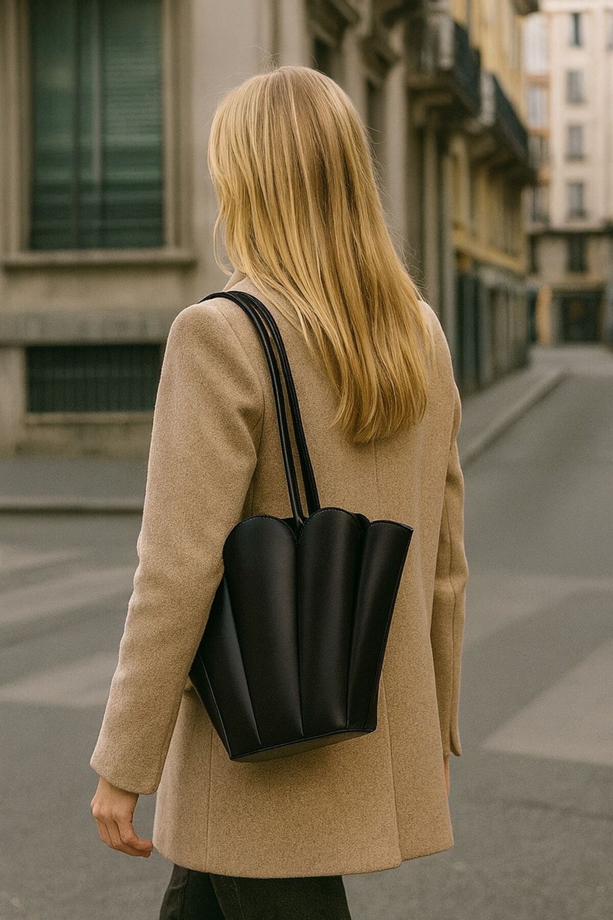 LEATHEROO Kadın Manolya Siyah Cüzdanlı Tasarım Omuz Çantası