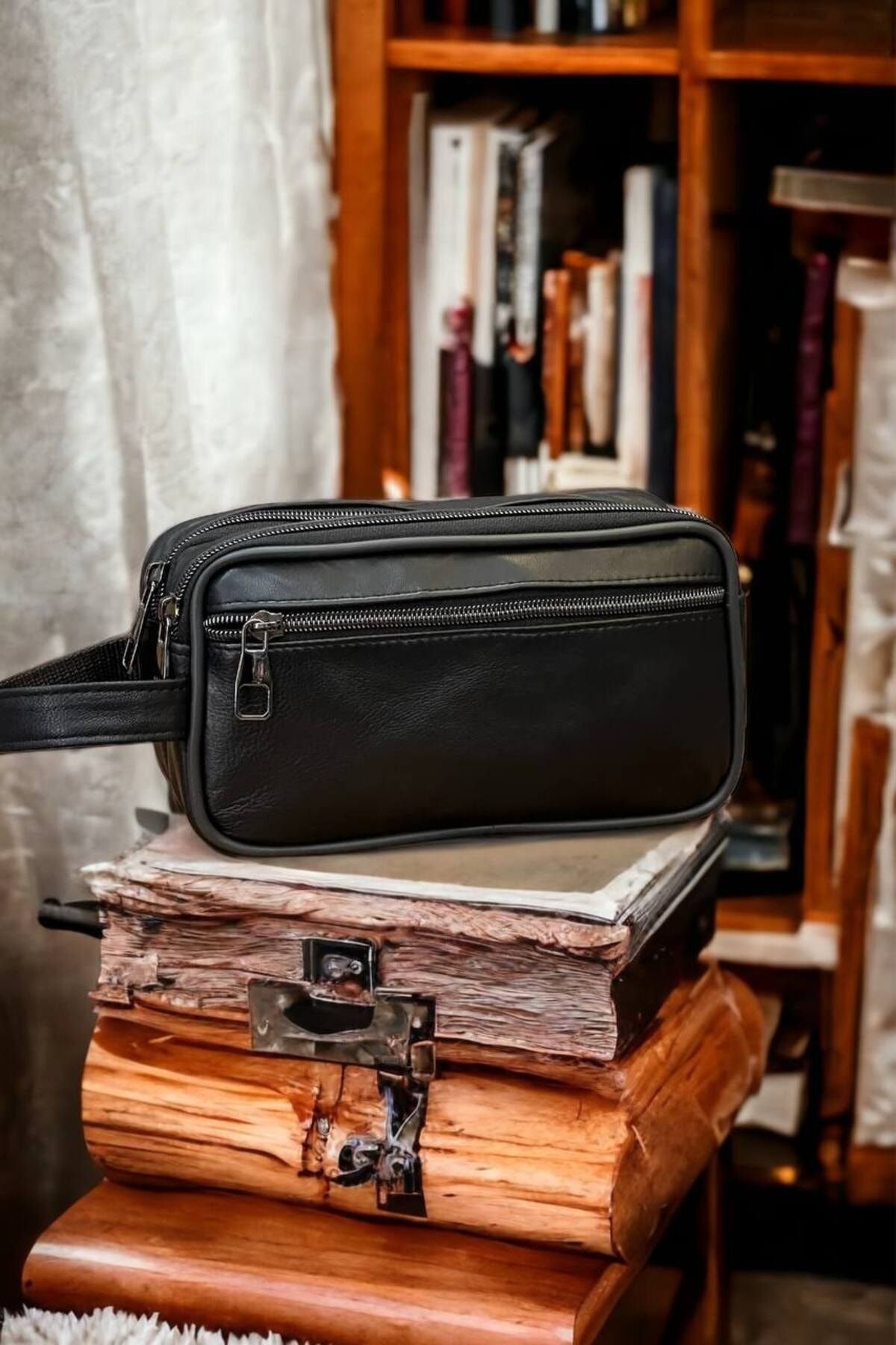 LEGAN Deri El Çantası Portföyü Hakiki Deri Çanta Traş Çantası