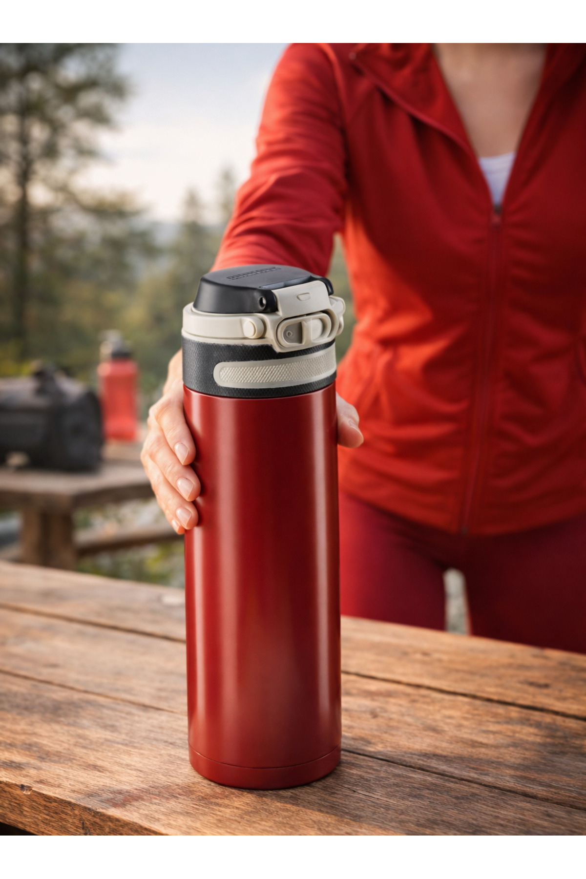 Leifheit 600ml Kırmızı Termos Matara Sıcak Soğuk Içecek Koruyucu Kolay Kullanım Pratik Tasarım 1 Adet