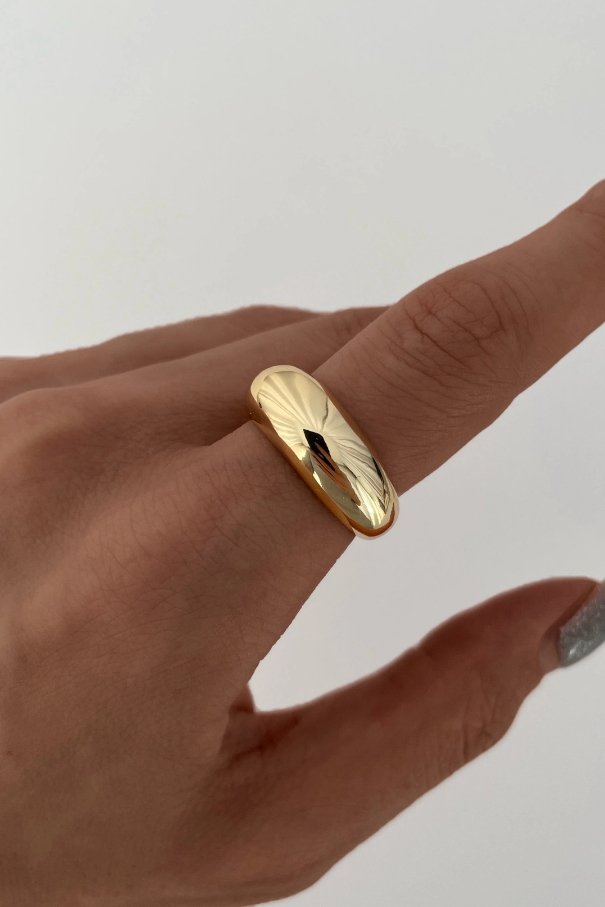 Leo’Stone Özel Seri İthal Cilalı Tekli Kalın Bombe Model Tasarım Ayarlanabilir Kadın Çelik Yüzük