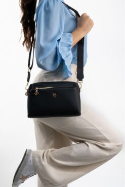 Les Crioch Kadın Siyah 3 Bölmeli Astarlı Ayarlanabilir Kolon Askılı Çapraz Omuz Çantası