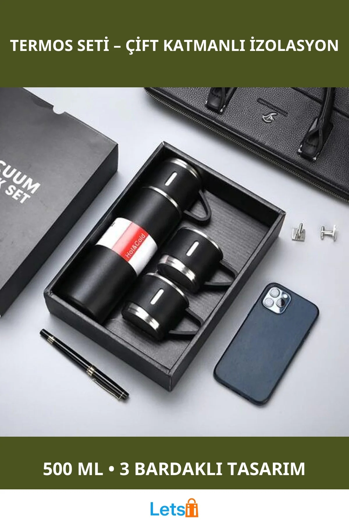 Letsii İki Katmanlı Isı Yalıtımlı 500 ML Termos 3 Bardaklı Siyah Bordo ürünü ucuz fiyat, hızlı kargo imkanı ile hemen sitemizden sipariş verin.