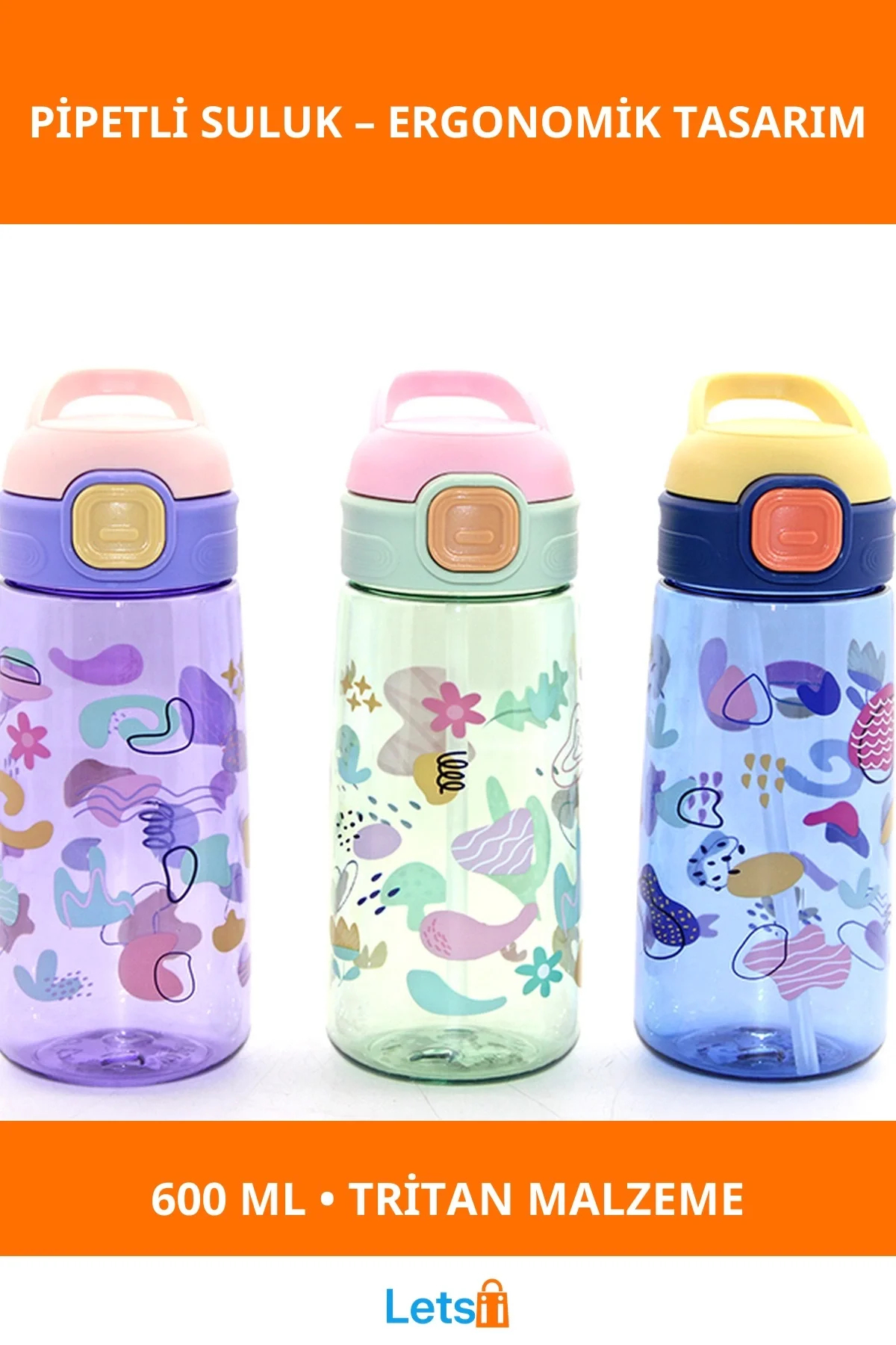 Letsii Renkli Pipetli Sızdırmaz 600 Ml Suluk Sağlıklı ve Dayanıklı Tritan ürünü ucuz fiyat, hızlı kargo imkanı ile hemen sitemizden sipariş verin.