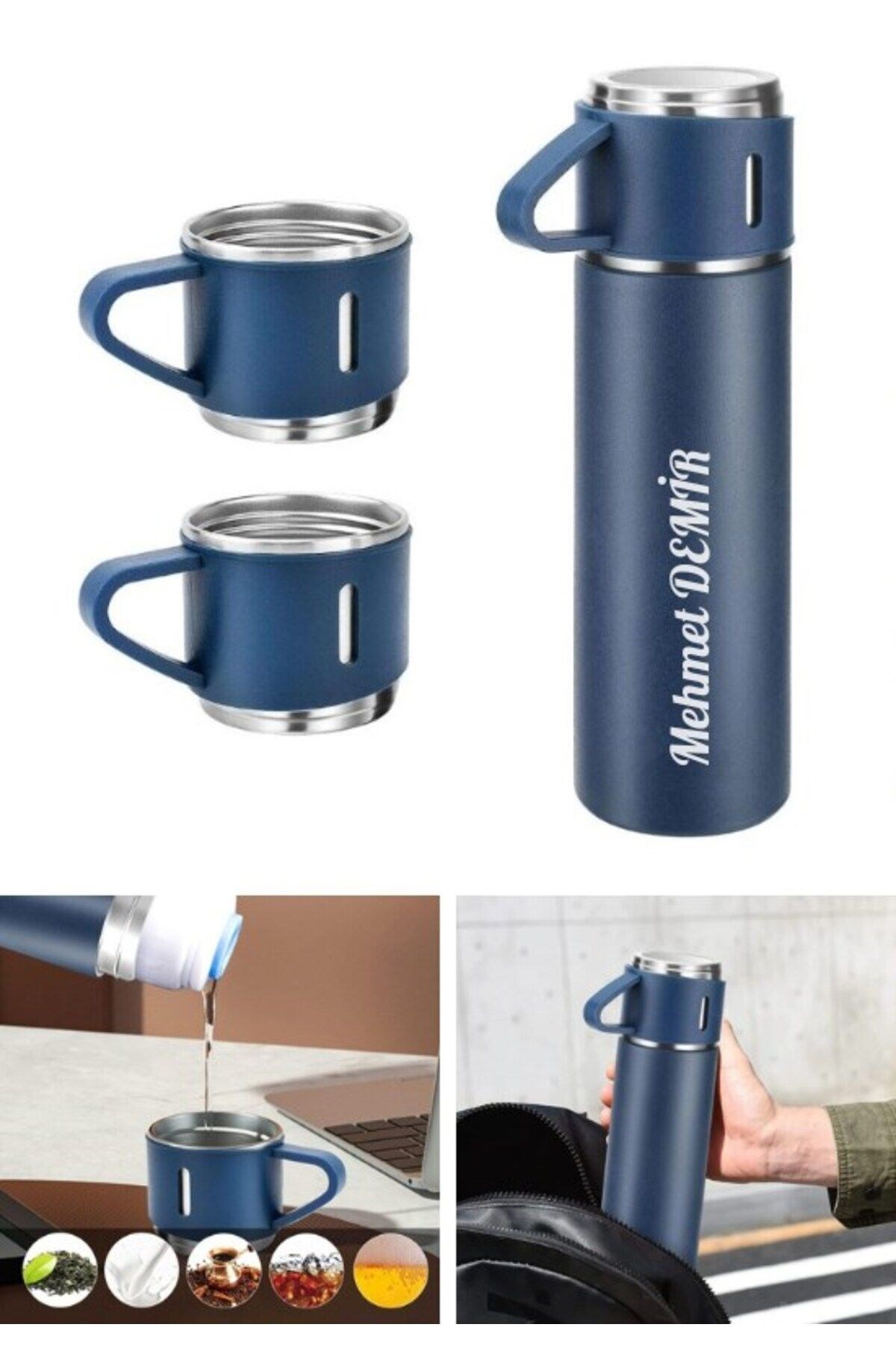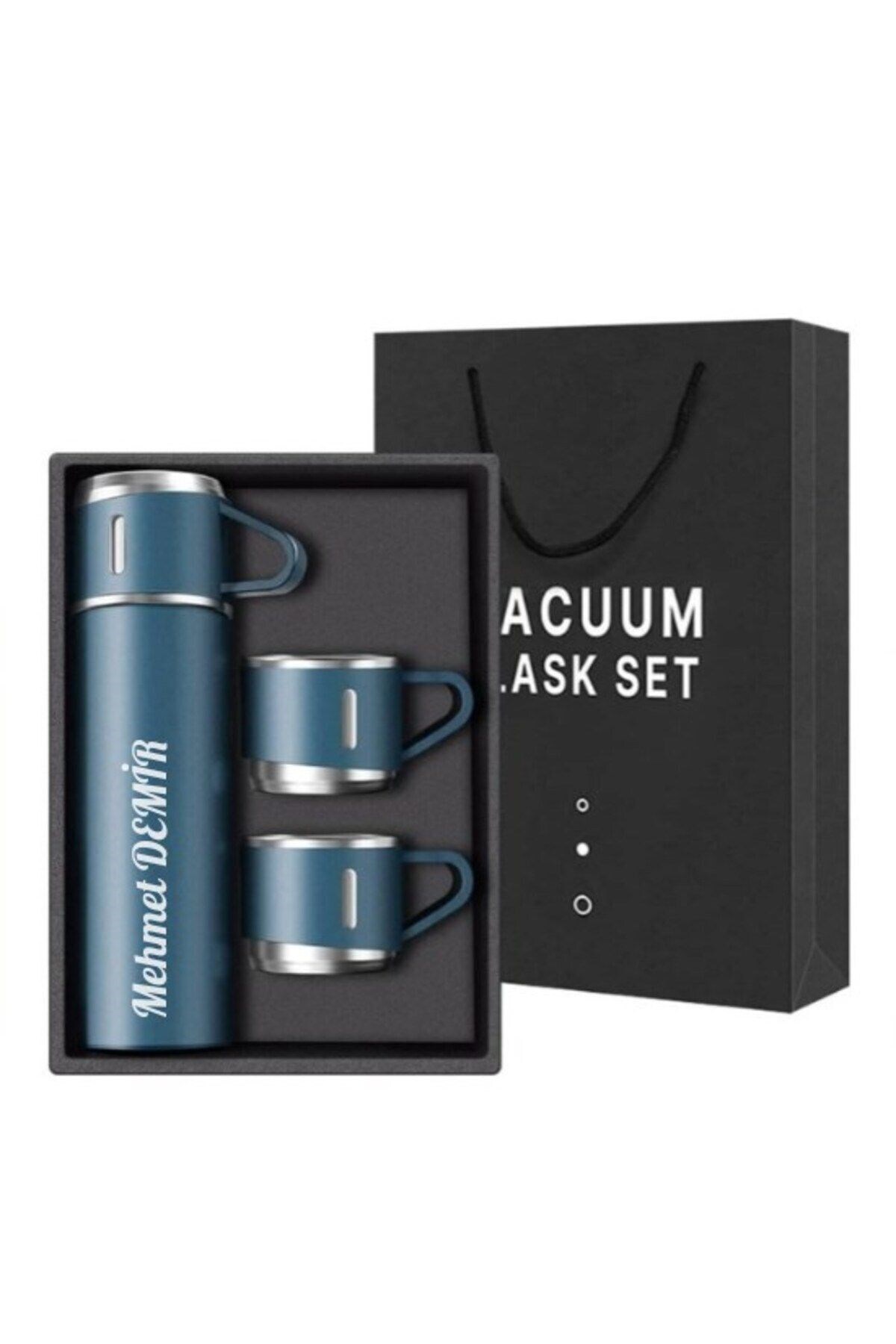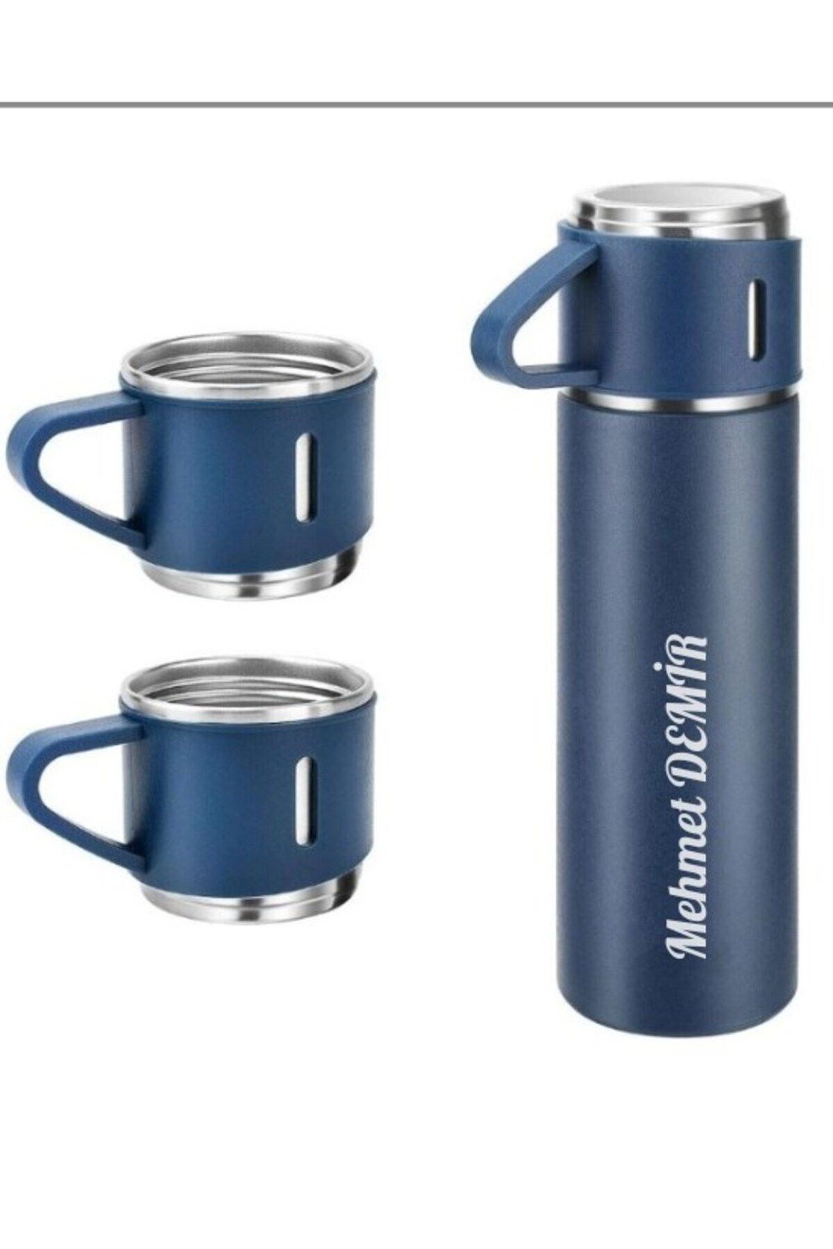 Lexi Bella İsime Kişiye Özel Hediye 3 Bardaklı Paslanmaz Çelik Vakumlu Sıcak Soğuk Kamp Termos Seti Lacivert