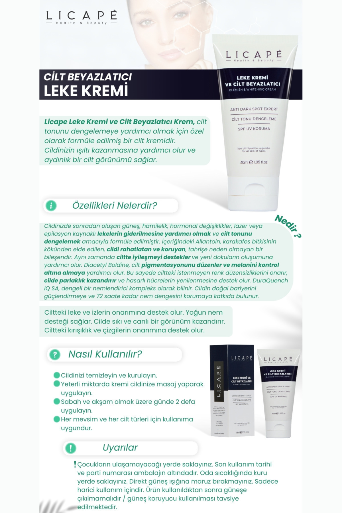 Licape Leke Kremi Ve Cilt Beyazlatıcı Krem 40ml