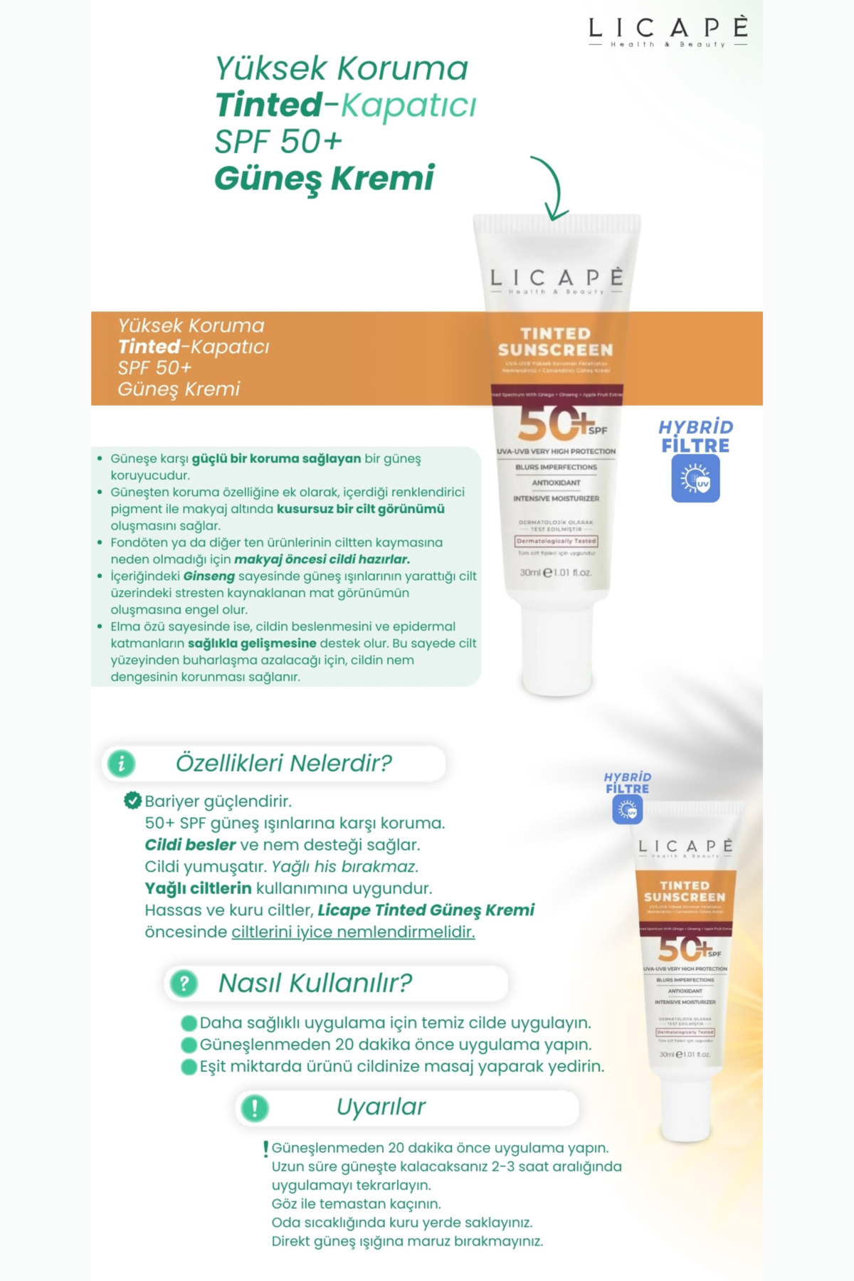 Licape Yüksek Koruma Tinted (KAPATICI) 50 Spf Güneş Kremi