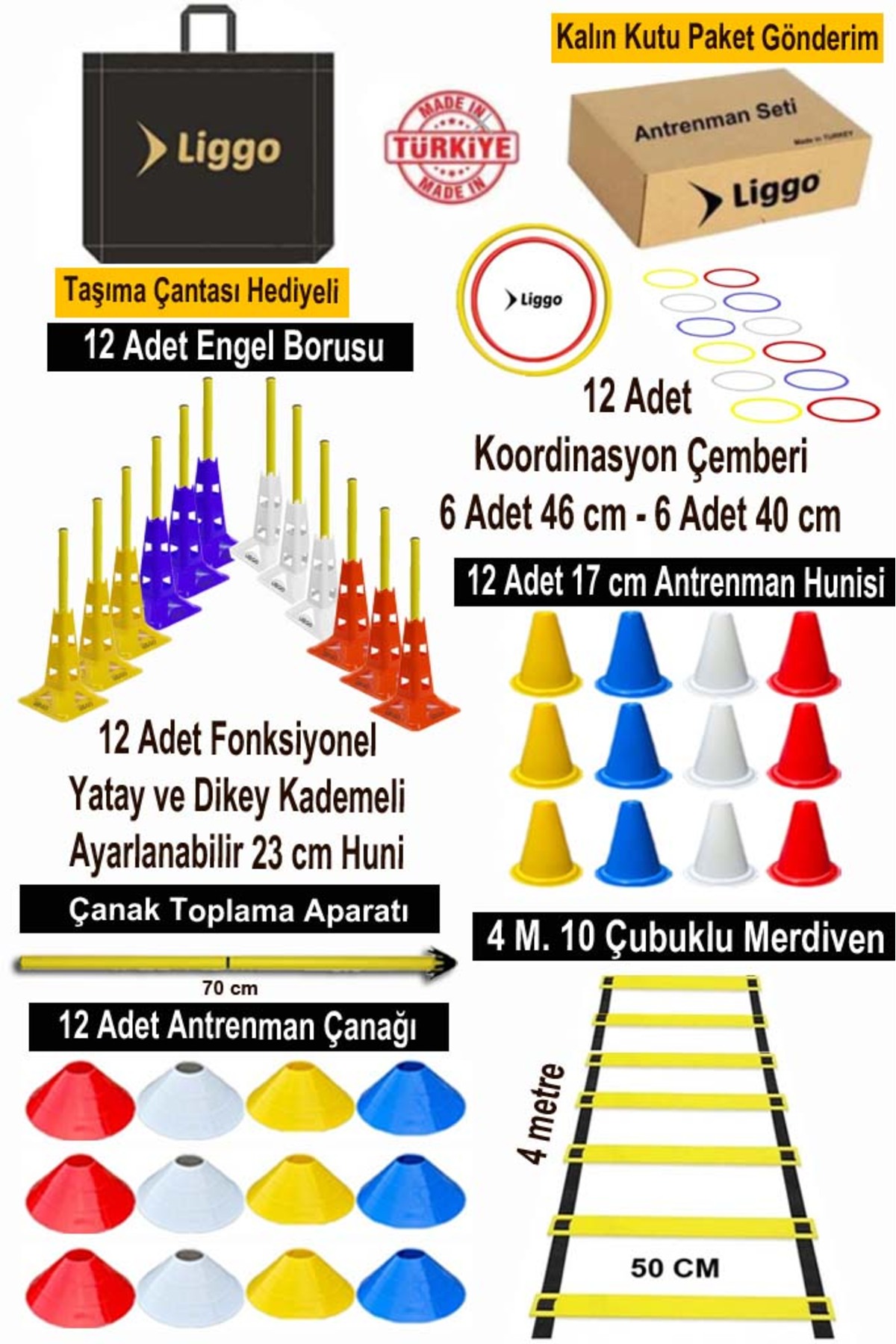 Liggo Profesyonel Olimpik Fonksiyonel Antrenman Seti Huni Çanak Çember Merdiven Eğitim Seti ürünü ucuz fiyat, hızlı kargo imkanı ile hemen sitemizden sipariş verin.
