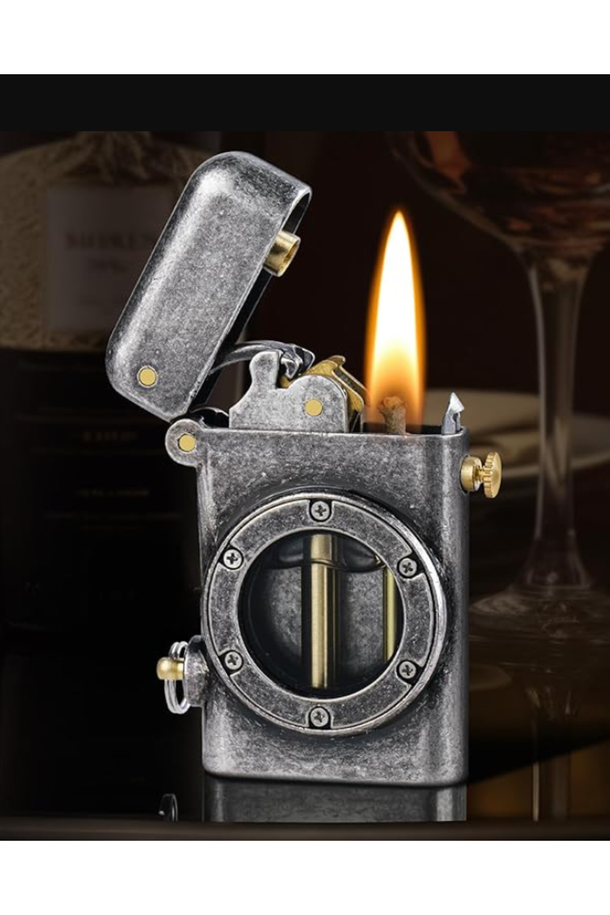 LİGHTER Norveç Gemici Model Morisk Şeffaf Yakıt Depolu Havalı Koleksiyonluk Benzinli Çakmak