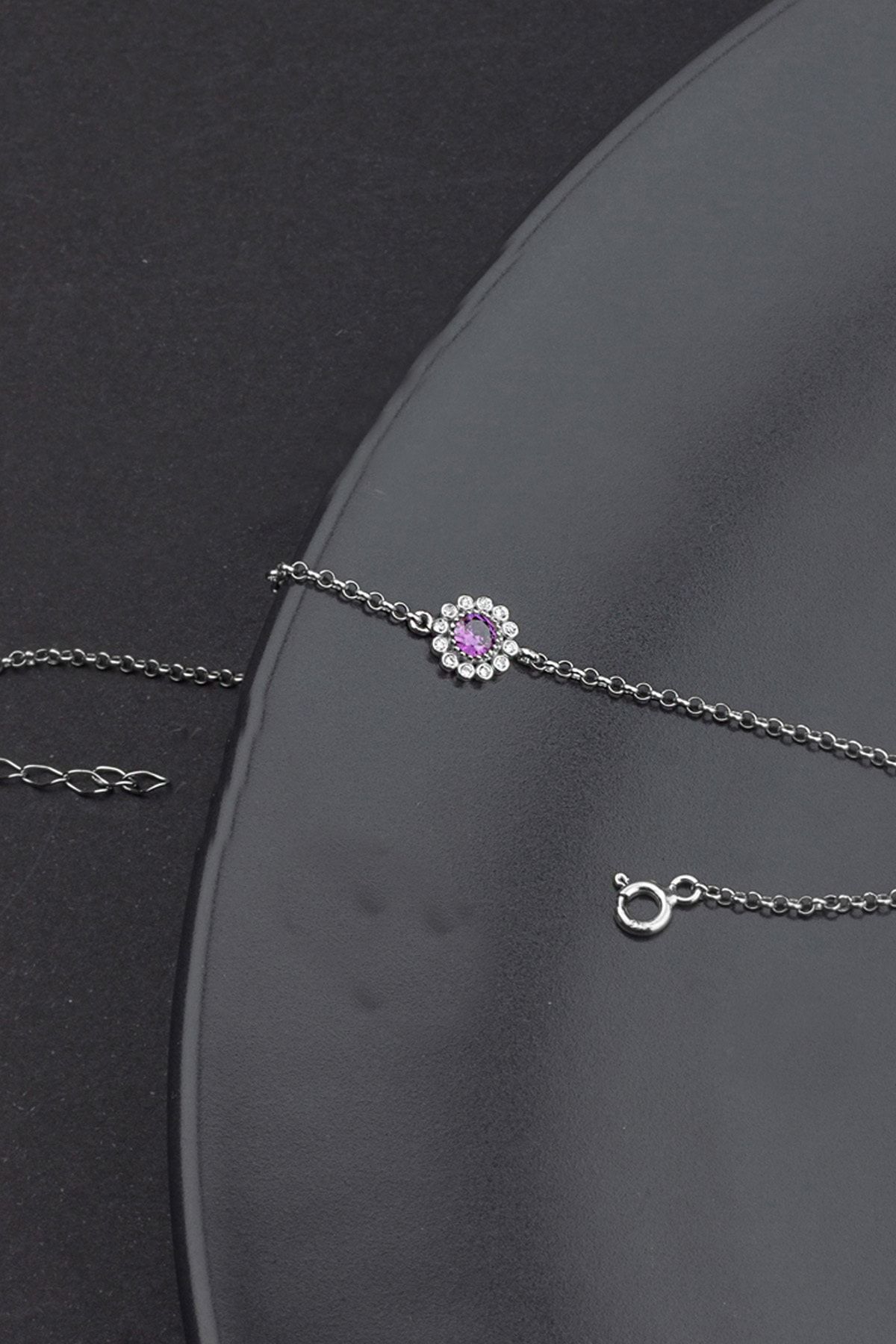LINTERNA 925 Ayar Gümüş Ametist Taşlı Papatya Bileklik