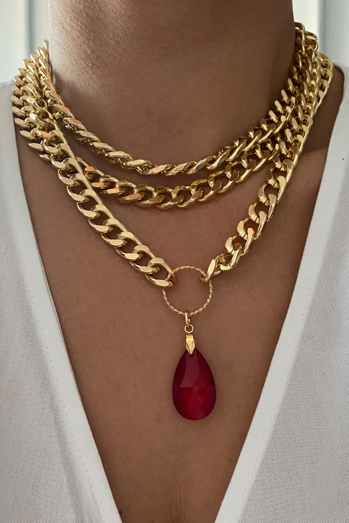 Liveyn Design Üç Sıralı Kristal Taşlı Kolye ürünü ucuz fiyat, hızlı kargo imkanı ile hemen sitemizden sipariş verin.