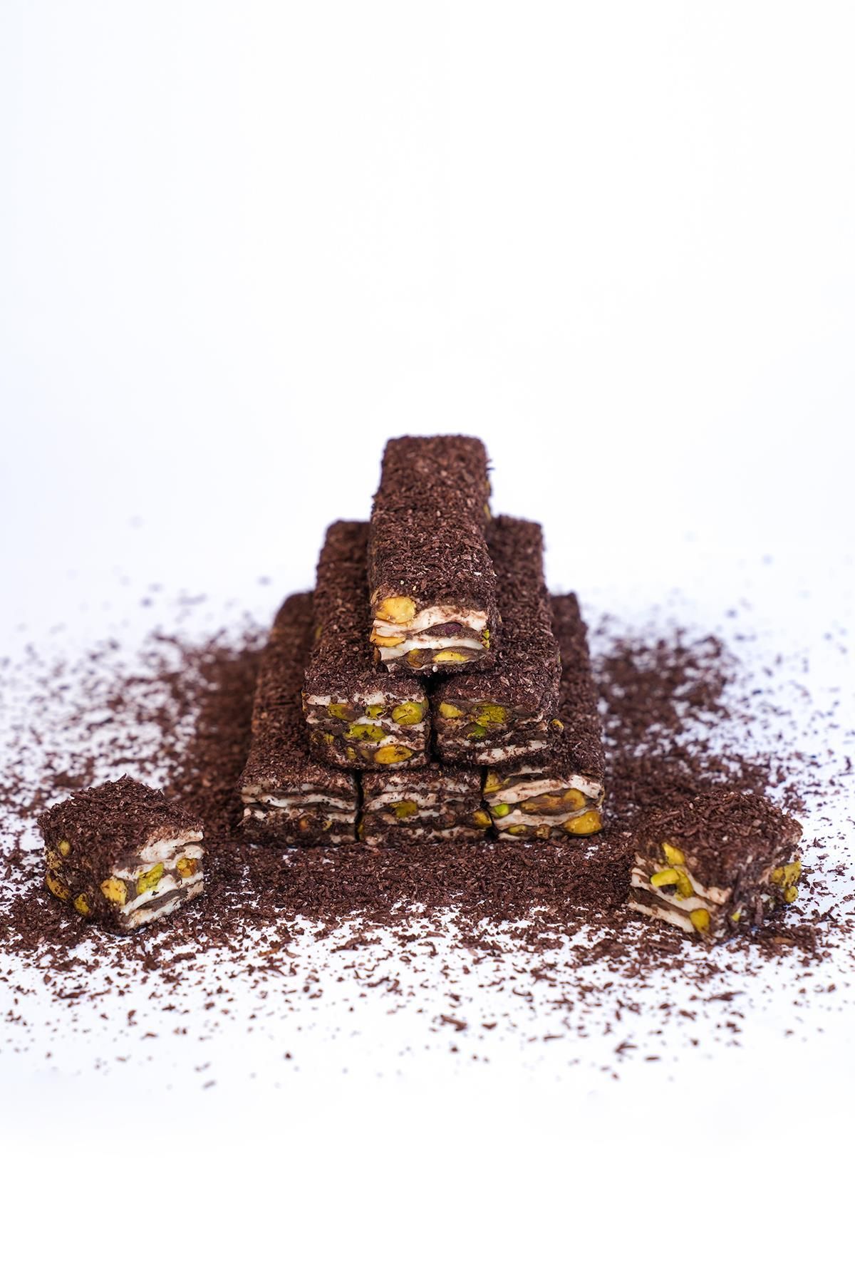 LOKUMCU MEHMET EFENDİ Tatlı bir hikaye Hindistan Cevizli Kakaolu Antep Fıstıklı Çikolatalı Baklava Lokum 500 Gr