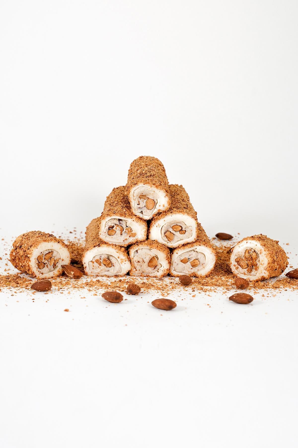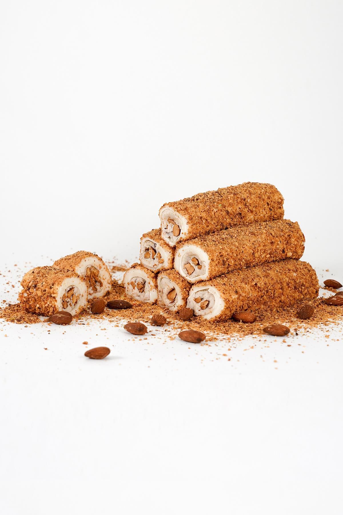 LOKUMCU MEHMET EFENDİ Tatlı bir hikaye Toz Bademli Vanilyalı Badem Krema Dolgulu Sarma Lokum 1 Kg