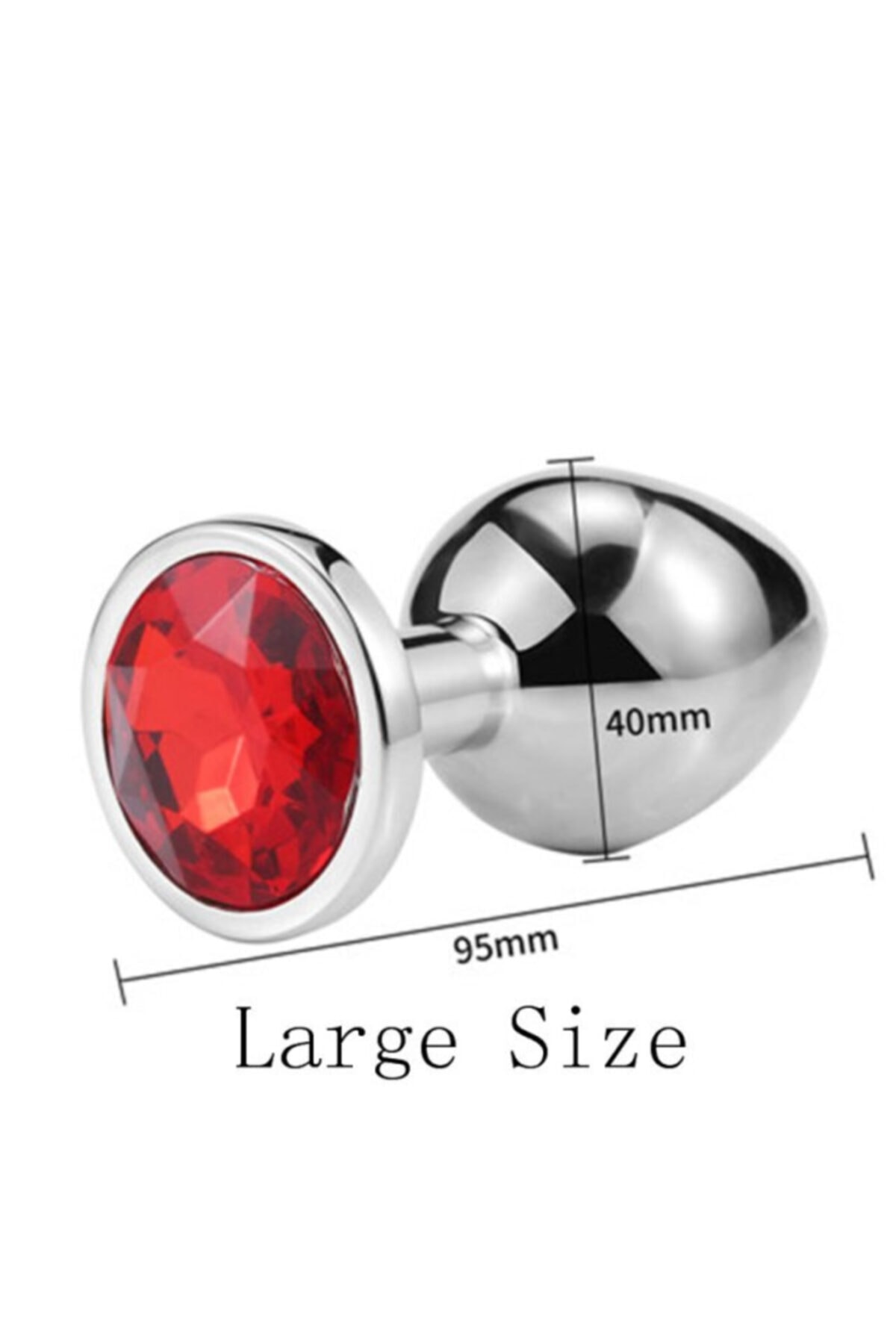Lolita Shop Kırmızı Taşlı Büyük Boy Gümüş Metal 10 Cm Lüks Anal Plug Ve Tıkaç