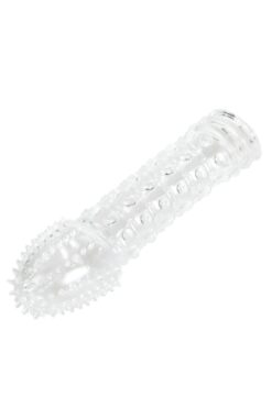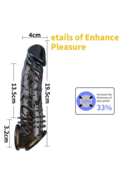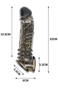 Lolita Shop Klitoris Uyarıcılı Tırtıklı Siyah Silikon 4 Cm Uzatmalı Dolgulu 21 Cm Testis Tutacaklı Penis Kılıfı