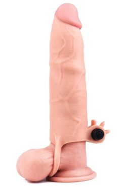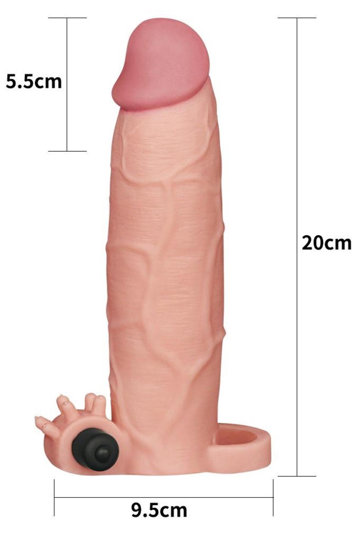 Lolita Shop Testis Tutacaklı Güçlü Titreşimli Kalın 5.5 Cm Uzatmalı Dolgulu 20 Cm Gerçekçi Dokuda Penis Kılıfı