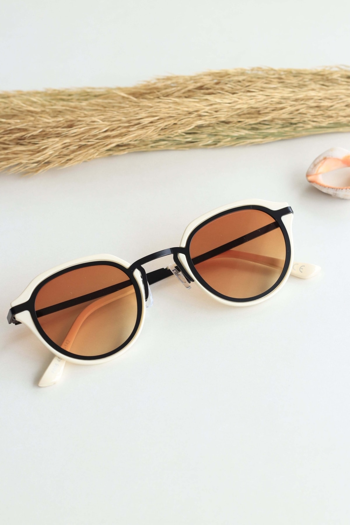 LOOKUP Güneş Gözlüğü Unisex Krem Bej Çerçeve Kahve Cam Uv 400 Koruma Metal Sap