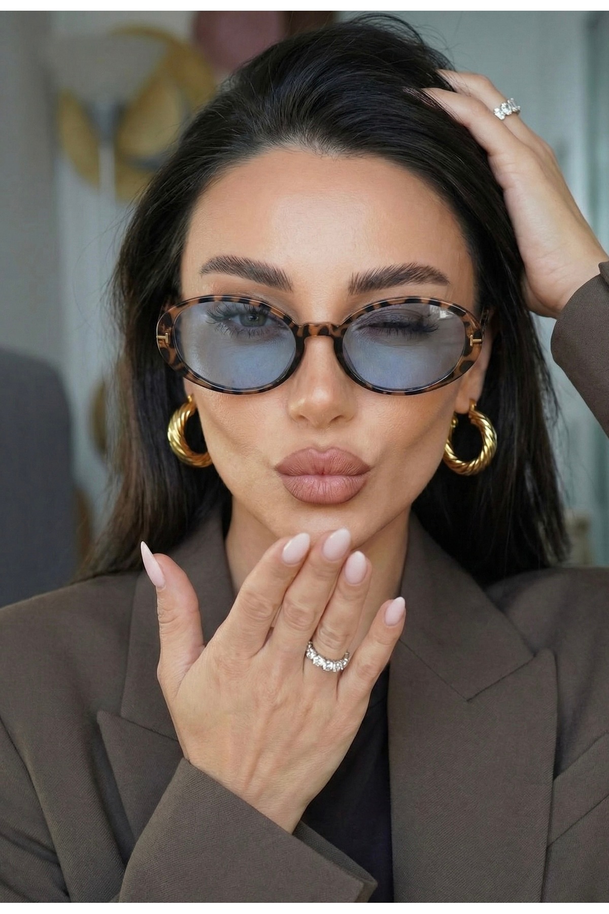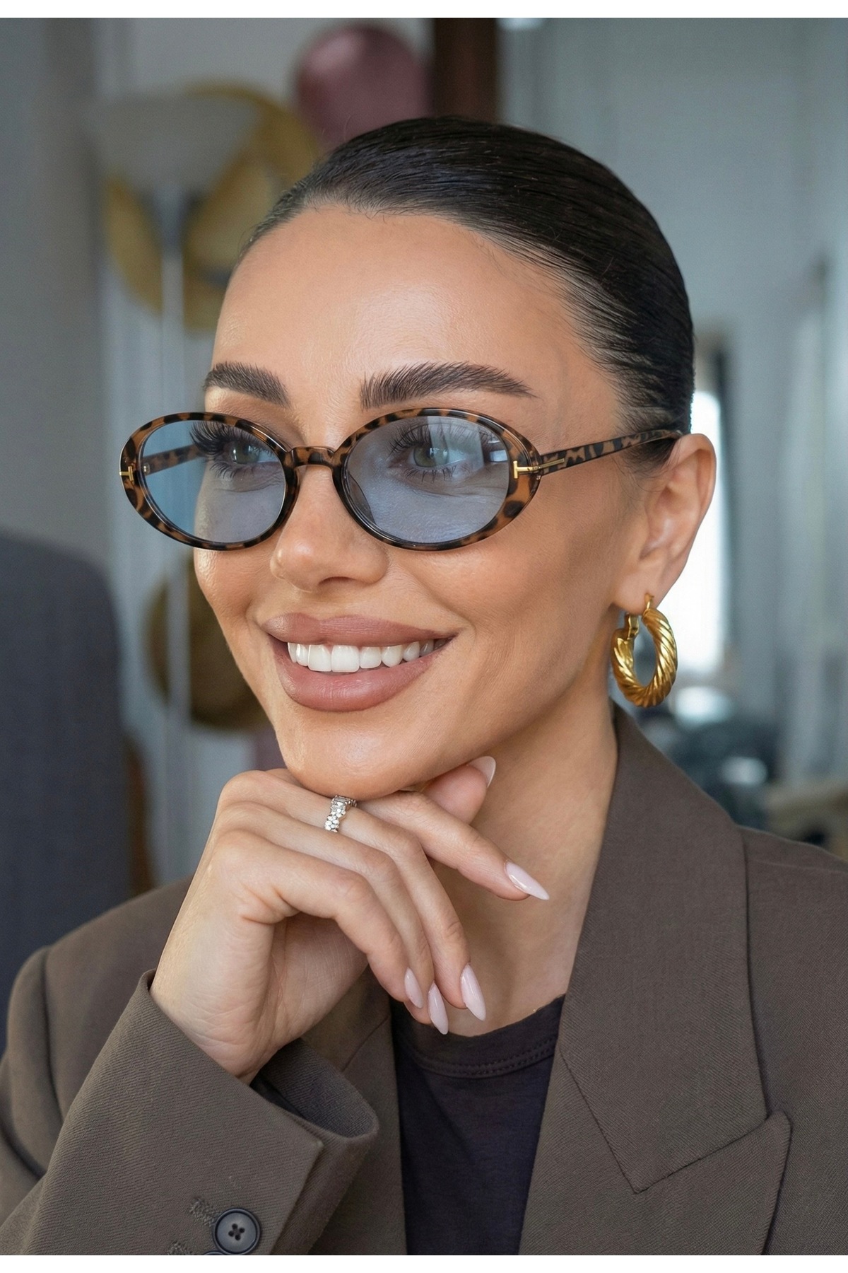 LOOKUP GÜNEŞ GÖZLÜĞÜ UV400 KORUMALI LEOPAR ÇERÇEVE MAVİ CAM UNİSEX KILIF VE SİLME BEZİ HEDİYELİ