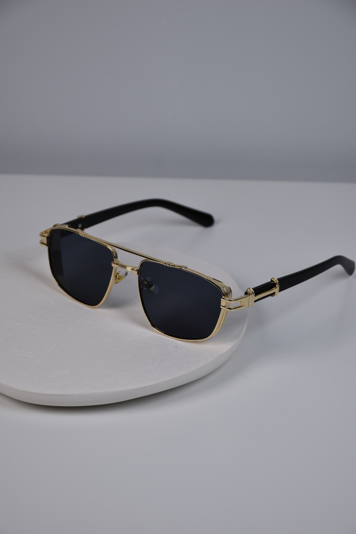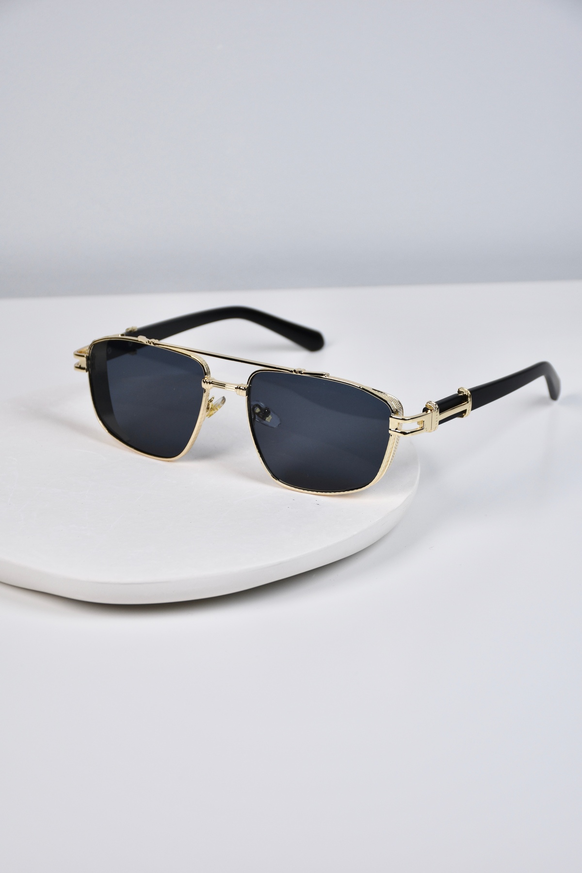 WATCHOFROYAL Güneş Gözlüğü Kadın & Erkek Uv400 Cam Ce Belgeli Gold Siyah Hexaw (SİYAH SAPLI)