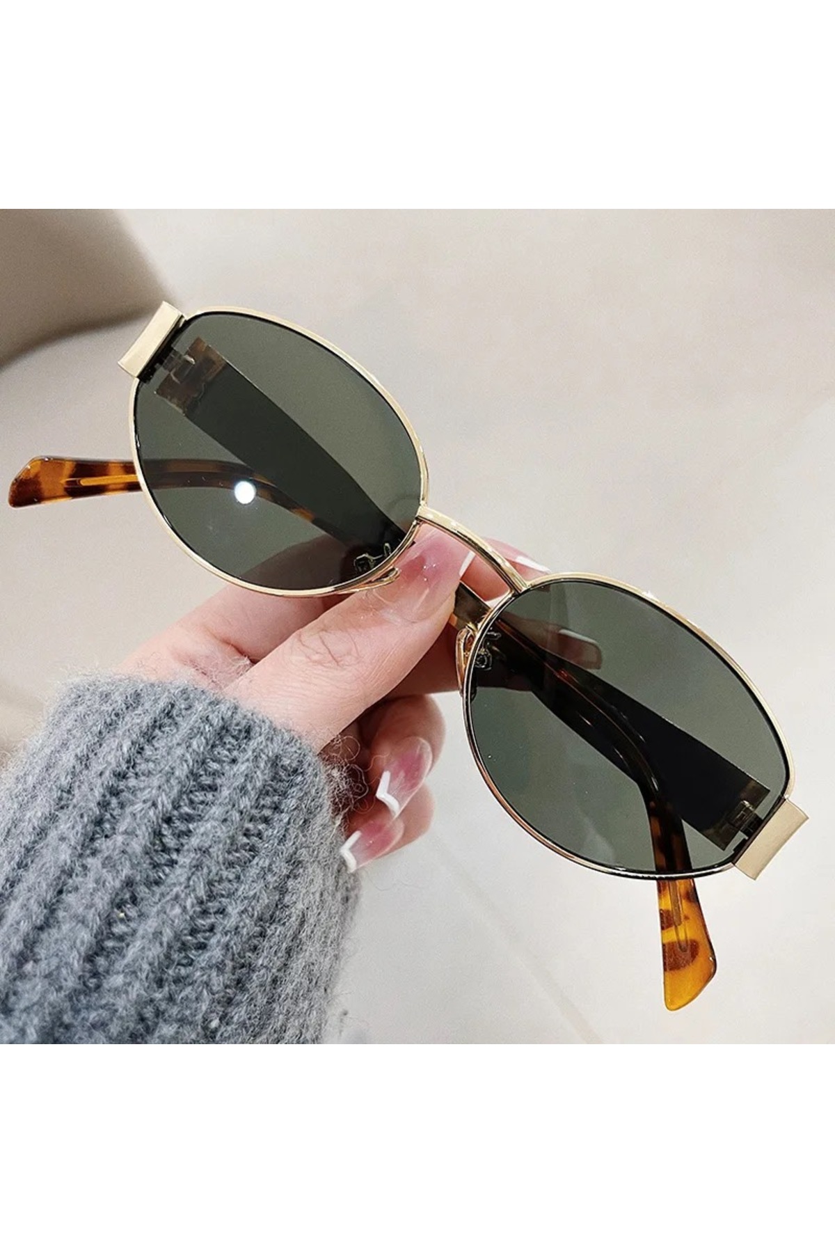 LOOKUP NEW Unisex Kadın Erkek Uv400 Korumalı Oval Yeşil Gold Leopar NyIon Cam Metal Güneş Gözlüğü