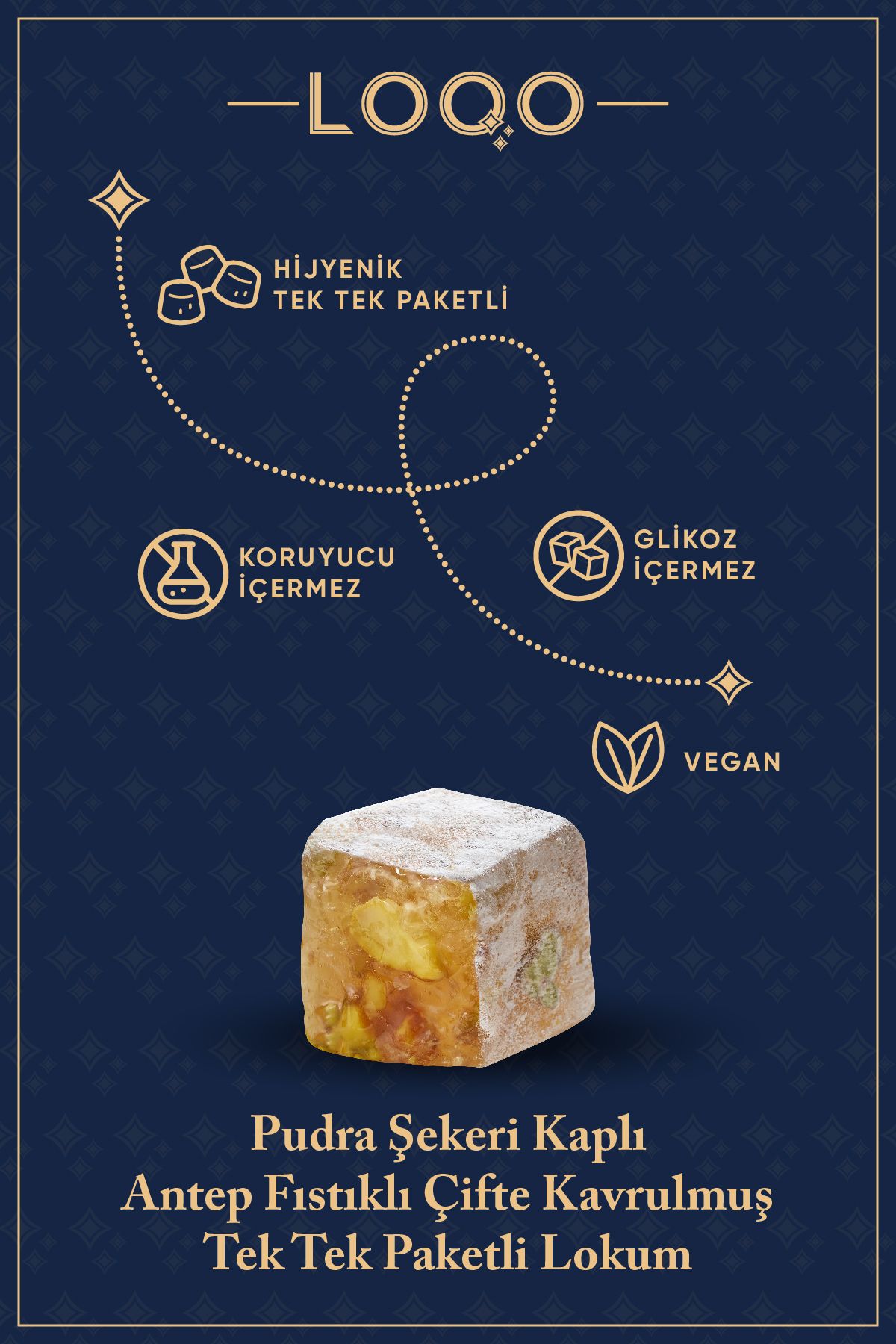 LOQO Pudra Kaplı Antep Fıstıklı Çifte Kavrulmuş Lokum 500 Gr (Tek Tek Paketli) 1033