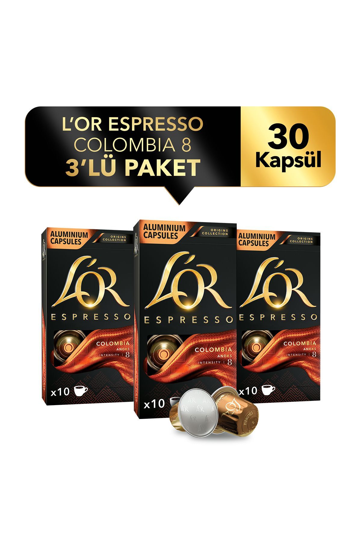 L’OR Espresso Origin Colombia Nespresso Uyumlu Alüminyum Kapsül Kahve 30’lu (10 x 3 paket)