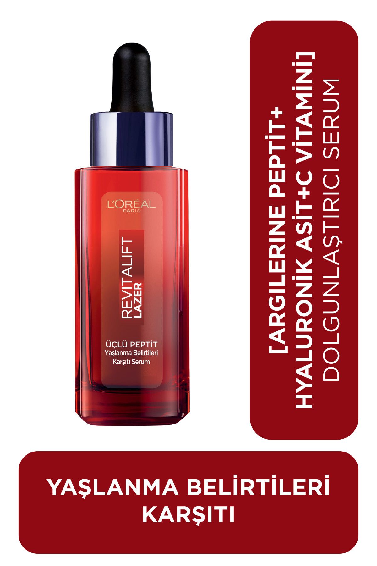 L'Oreal Paris Revitalift Lazer Yaşlanma Belirtileri Karşıtı Üçlü Peptit Bakım Serumu 30 ml ürününü en uygun fiyata kozmetikara.com sitemizden sipariş verebilirsiniz.